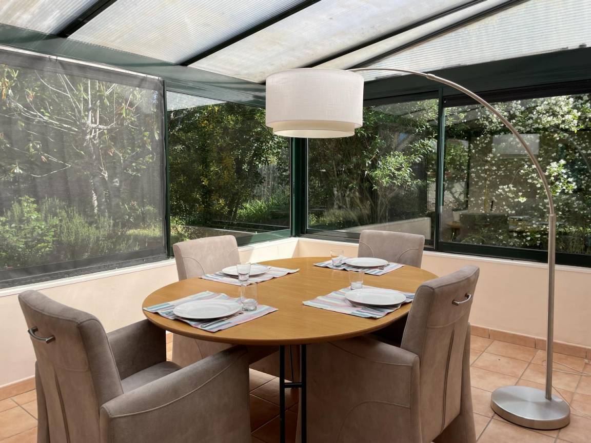Ruhen Sie sich im Garten aus, der das Haus umgibt und auf einen sonnige