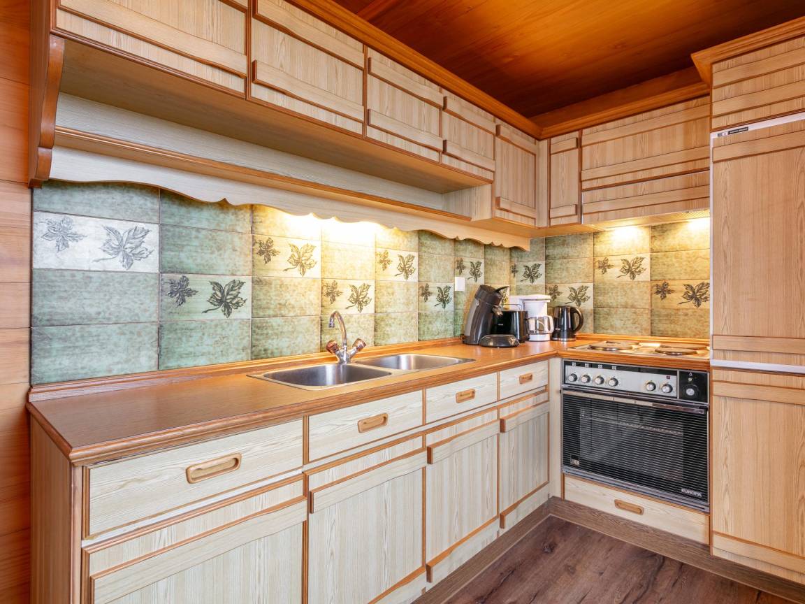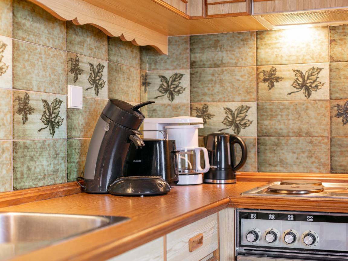 Layout : Parterre: Eingang, Esszimmer mit Esstisch(6 Personen), Sitzecke, Sitzecke , Küche mit Wasserkocher, Kochherd(4 Kochplatten, Ceranfeld), Dunstabzugshaube, Kaffeemaschine(Filter, pads), Backofen, Geschirrspüler, Kühlschrank(+ Gefrierfach) , Schlafzimmer mit Einzelbett(80 x 190 cm) , Schlafzimmer mit 2x Einzelbett(90 x 190 cm) , Schlafzimmer mit Doppelbett(170 x 200 cm)