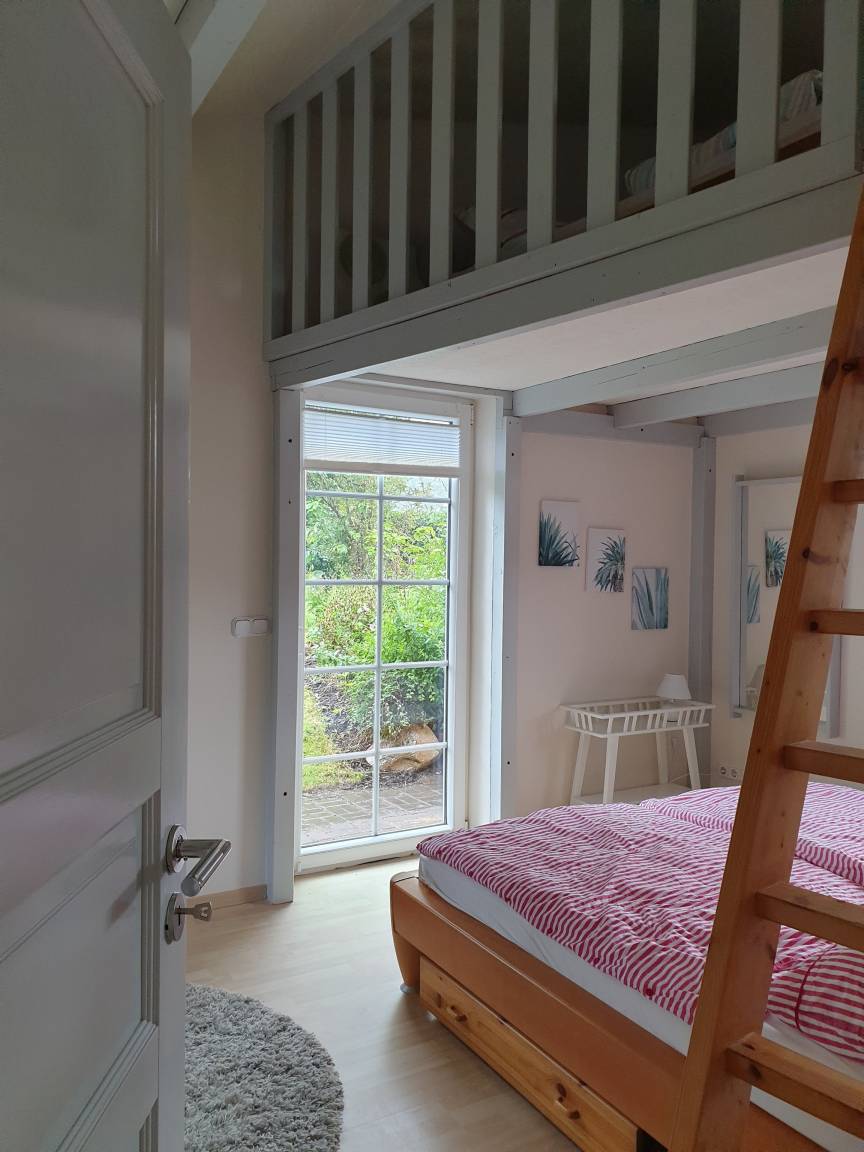 Diese Wohnung ist nur für maximal 2 Erwachsene und 2 Kinder geeignet. Im Schlafzimmer steht ein bequemes Doppelbett zur Verfügung, darüber befindet sich eine Empore mit einem weiteren Schlafplatz für 2 Kinder, erreichbar nur über eine Leiter.