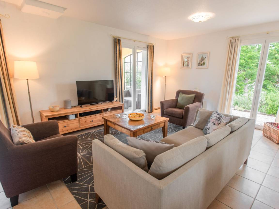 Hausbeschreibung : Schönes Ferienhaus mit privatem Garten und in fußläufiger Entfernung zum Trüffeldorf Aups (400 m). Es befindet sich auf einer kleinen Domäne (17 Villen) mit einem großen Gemeinschaftspool, Tennisplatz und Jeu-de-Boules-Platz. Sie können sich auf der großen Terrasse an der Vorderseite mit viel Privatsphäre oder auf der überdachten Terrasse an der Rückseite der Villa entspannen. Die Kinder haben Spaß im Pool, während Sie Ausflüge zu den Gorges de Verdon und dem See Lac de Sainte-Croix planen!