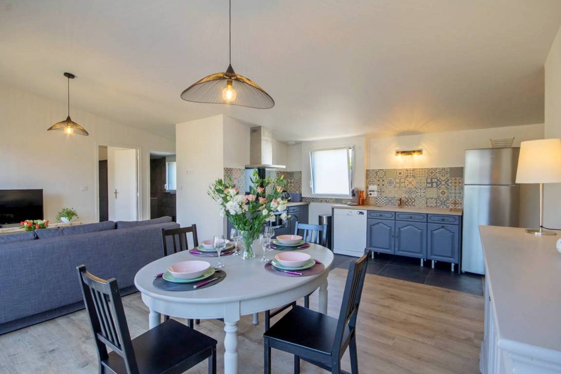 „Très bon accueil de Gaëlla, présente et discrète à la fois, nombreux conseils donnés sur les activités et sites à voir, maison très récente, confortable, lumineuse, très bien équipée. Le spa est un gros point confort après de longues balades-découvertes.“