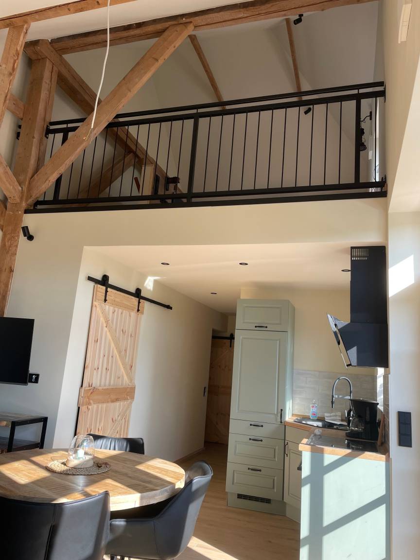 Entdecken Sie unsere liebevoll restaurierte Beischeune, die mit nachhaltigen Baumaterialien umgebaut wurde. Modernster Komfort trifft auf historischen Charme – perfekt für den besonderen Urlaub. Nachhaltigkeit und zeitgemäßer Standard vereint in einem einzigartigen Raum!