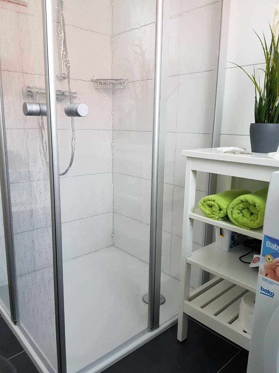 Obergeschoss: Ein Schlafzimmer mit Doppelbett und Kinderbett (inkl. Matratze/Bettwäsche) sowie ein zweites Zimmer mit zwei Einzelbetten und eigenem Flachbild-TV. Ein weiteres modernes Duschbad rundet die Etage ab.