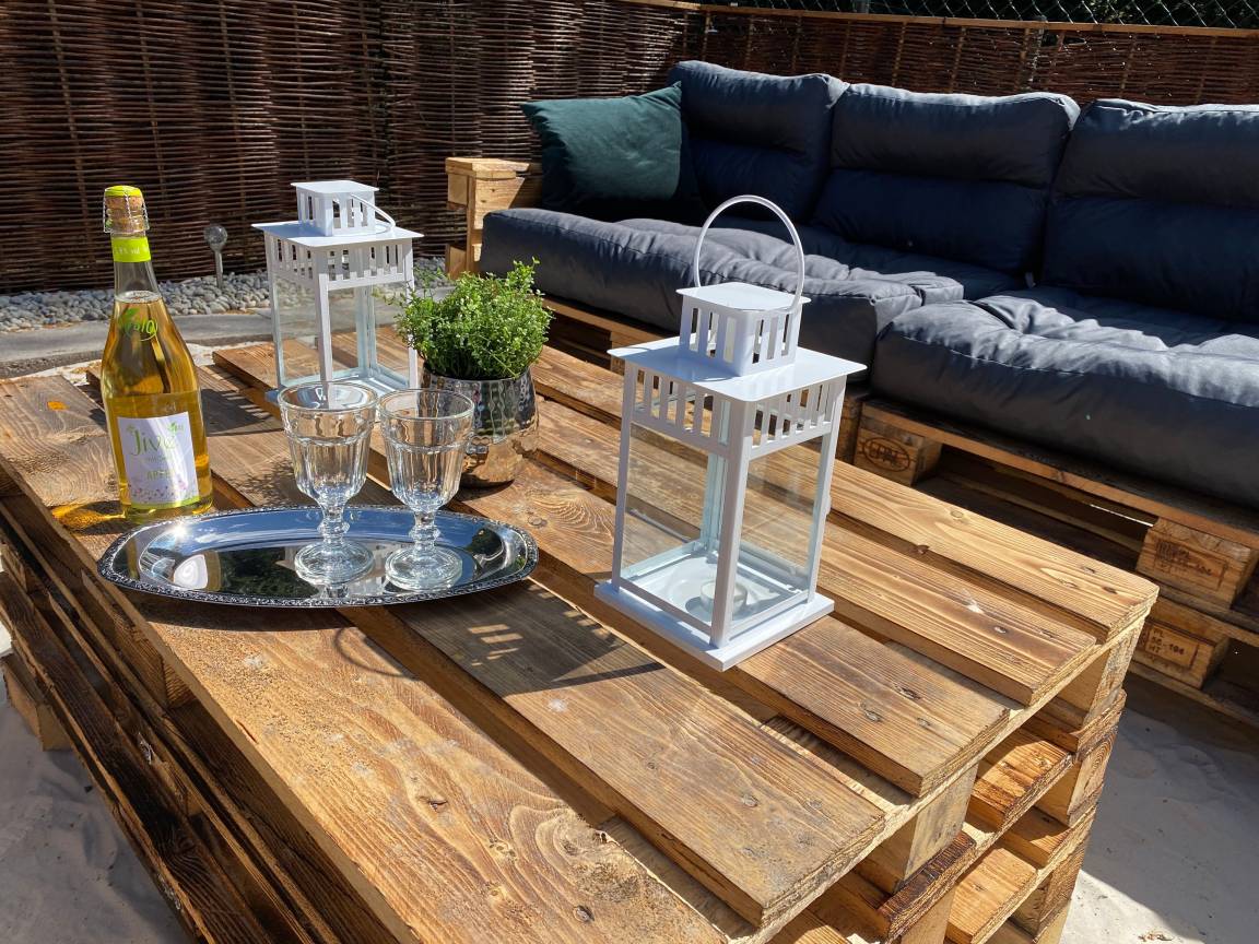 Die gemütliche, überdachte Terasse mit Gartenmöbeln und Markise in Südwestlage garantiert Ihnen lange, sonnige Abende zum Ausklingen von erlebnisreichen Tagen.