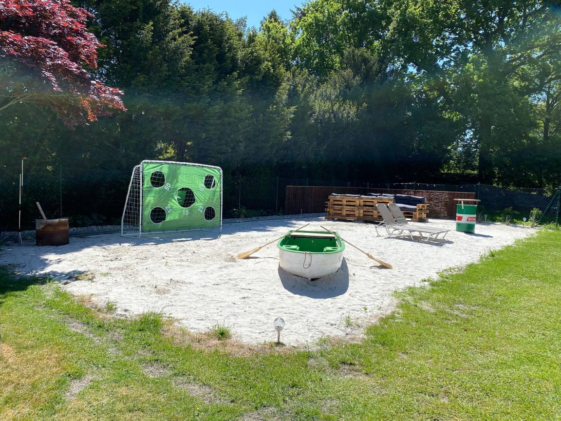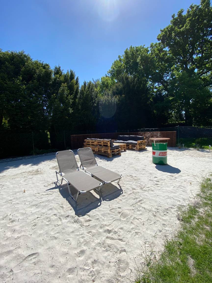 Zu unserer gepflegten FeWo "Brazil" gehört ein ca. 400 m² großer, durch Zaun abgeschlossenes Gartengrundstück mit Baumbestand und großer Rasenfläche. Ein 90qm großer Strandbereich ist wunderbar zum entspannen.