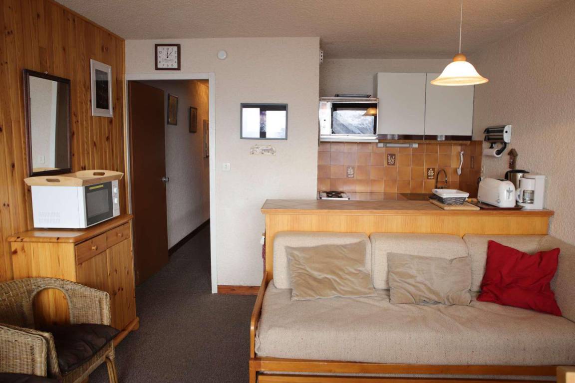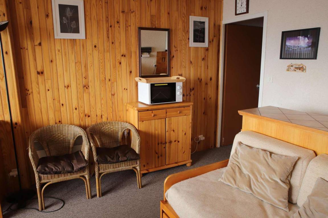 Fläche von ungefähr 35 m². 2te Etage. Orientierung : Süd-Ost, Süd. Blick berg (Massif des Ecrins). Wohnzimmer mit Ausziehschlafcouch für 2 Personen. Schlafzimmer mit Doppelbett, 2 Stockbetten. Kochnische mit Raclettegerät, Kaffeemaschine, kleiner Backofen mit Mikrowellenfunktion, Geschirrspülmaschine, kleiner Backofen, Herdplatten, Kühlschrank, . Badezimmer mit Badewanne. separates WC. Balkon mit Gartentisch und -stühle. Die oberen Betten sind nicht für Kinder unter 6 Jahren geeignet.