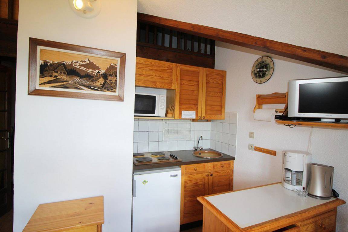 Fläche von ungefähr 27 m². 3te Etage. Orientierung : Süd. Blick berg. Niveau 0 : Wohnzimmer. offener Schlafbereich mit 2 Stockbetten. Kochnische mit Wasserkocher, Kaffeemaschine, kleiner Backofen mit Mikrowellenfunktion, Toaster, Herdplatten, Kühlschrank. Badezimmer mit Badewanne. separates WC. Balkon. Niveau 1 : Zwischengeschoss mit Doppelbett. Die oberen Betten sind nicht für Kinder unter 6 Jahren geeignet.