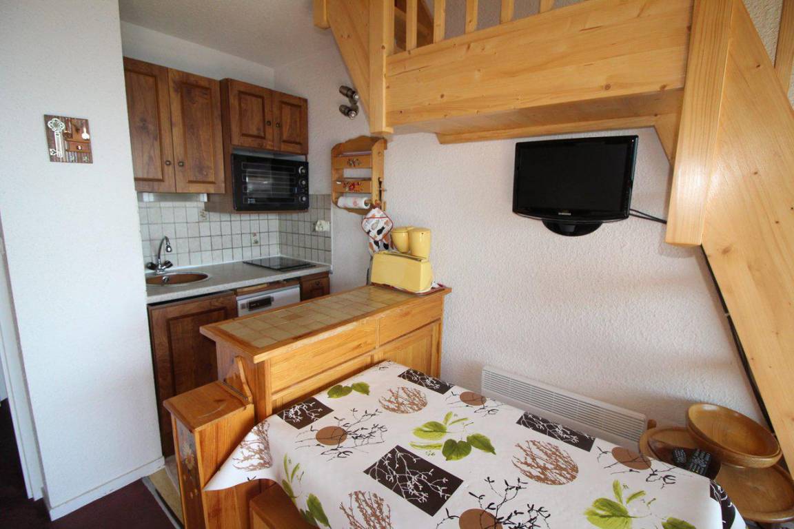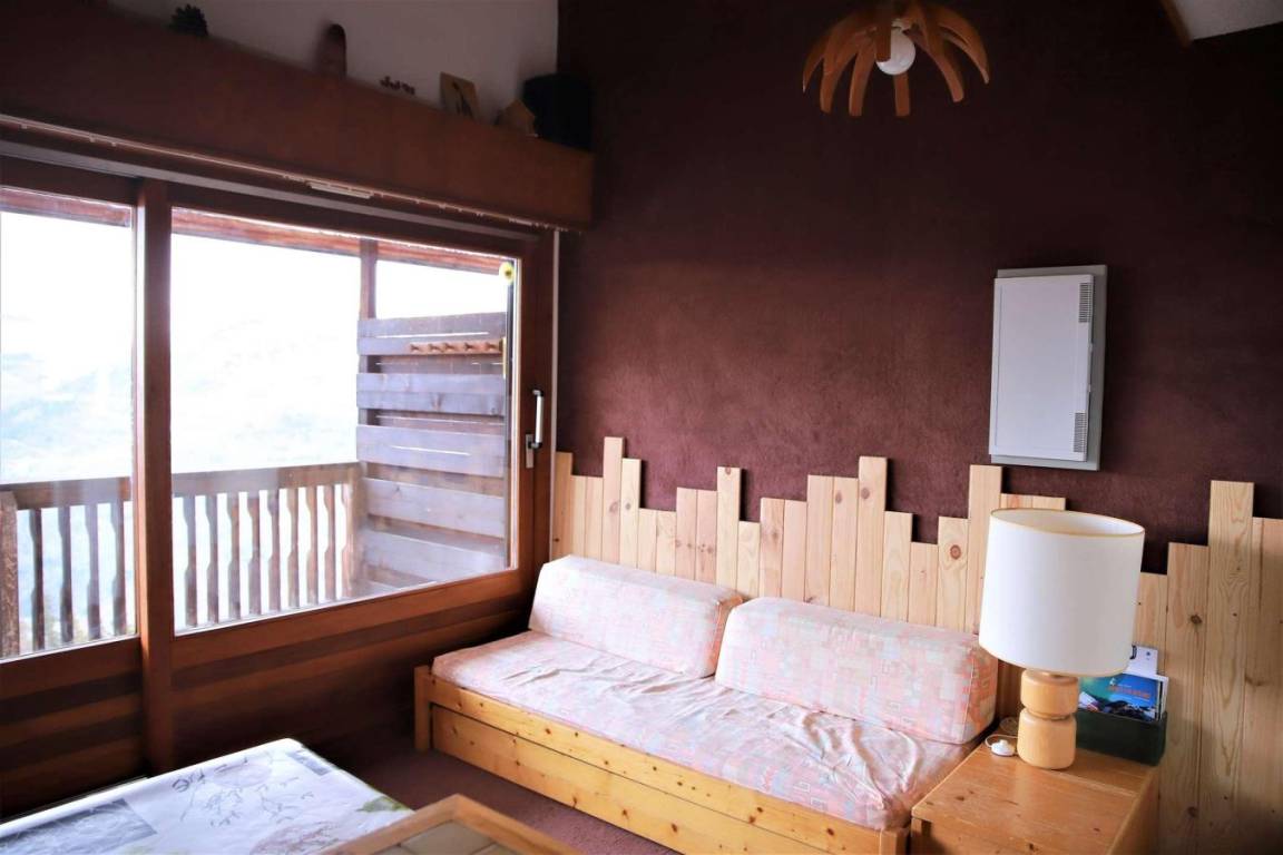 Fläche von ungefähr 27 m². 6te Etage. Orientierung : Süd. Blick berg. Wohnzimmer. Zwischengeschoss mit Doppelbett. offener Schlafbereich mit 2 Stockbetten. Kochnische mit Raclettegerät, Wasserkocher, Kaffeemaschine, kleiner Backofen mit Mikrowellenfunktion, Toaster, Kühlschrank. Badezimmer mit Badewanne, WC. Balkon mit Gartentisch und -stühle. Die oberen Betten sind nicht für Kinder unter 6 Jahren geeignet.