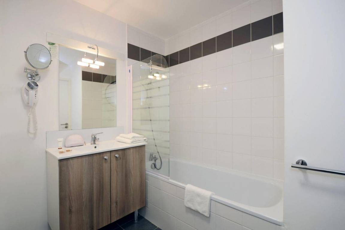 Fläche von ungefähr 65 m². Wohnzimmer mit Ausziehschlafcouch für 2 Personen. 2 Schlafzimmer mit Doppelbett. Schlafzimmer mit 2 Einzelbetten oder 2 Stockbetten. Kochnische mit Wasserkocher, Kaffeemaschine (capsules), Toaster, Geschirrspülmaschine, Mikrowellenherd, 2 Glaskeramikkochfelder, Kühlschrank. Badezimmer. separates WC. Terrasse ODER Balkon. Die oberen Betten sind nicht für Kinder unter 6 Jahren geeignet.