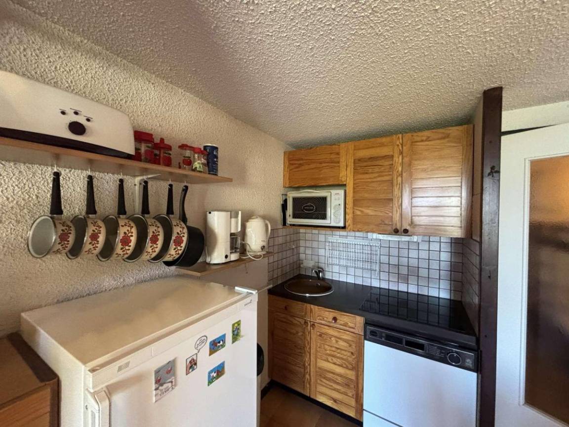 Fläche von ungefähr 45 m². 2te Etage. Orientierung : Süd-Ost. Wohnzimmer mit Klappschlafcouch, TV. Zwischengeschoss mit Klappschlafcouch. offener Schlafbereich mit 2 Stockbetten. Kochnische mit Staubsauger, Wasserkocher, Kaffeemaschine, Backofen, Toaster, Geschirrspülmaschine, 2 Glaskeramikkochfelder, Kühl-Gefrier-Kombination. Badezimmer. WC. Balkon mit Gartentisch und -stühle. Die oberen Betten sind nicht für Kinder unter 6 Jahren geeignet.