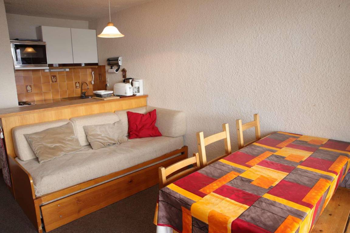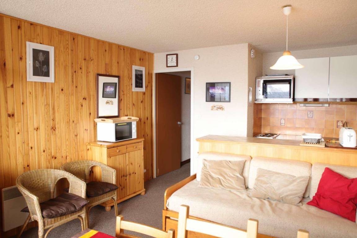 Fläche von ungefähr 35 m². 2te Etage. Orientierung : Süd-Ost, Süd. Blick berg (Massif des Ecrins). Wohnzimmer mit Ausziehschlafcouch für 2 Personen. Schlafzimmer mit Doppelbett, 2 Stockbetten. Kochnische mit Raclettegerät, Kaffeemaschine, kleiner Backofen mit Mikrowellenfunktion, Geschirrspülmaschine, kleiner Backofen, Herdplatten, Kühlschrank, . Badezimmer mit Badewanne. separates WC. Balkon mit Gartentisch und -stühle. Die oberen Betten sind nicht für Kinder unter 6 Jahren geeignet.