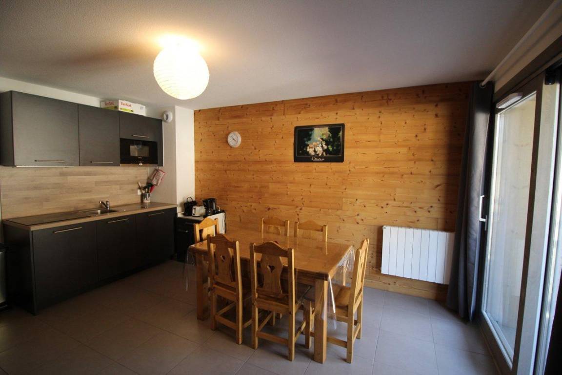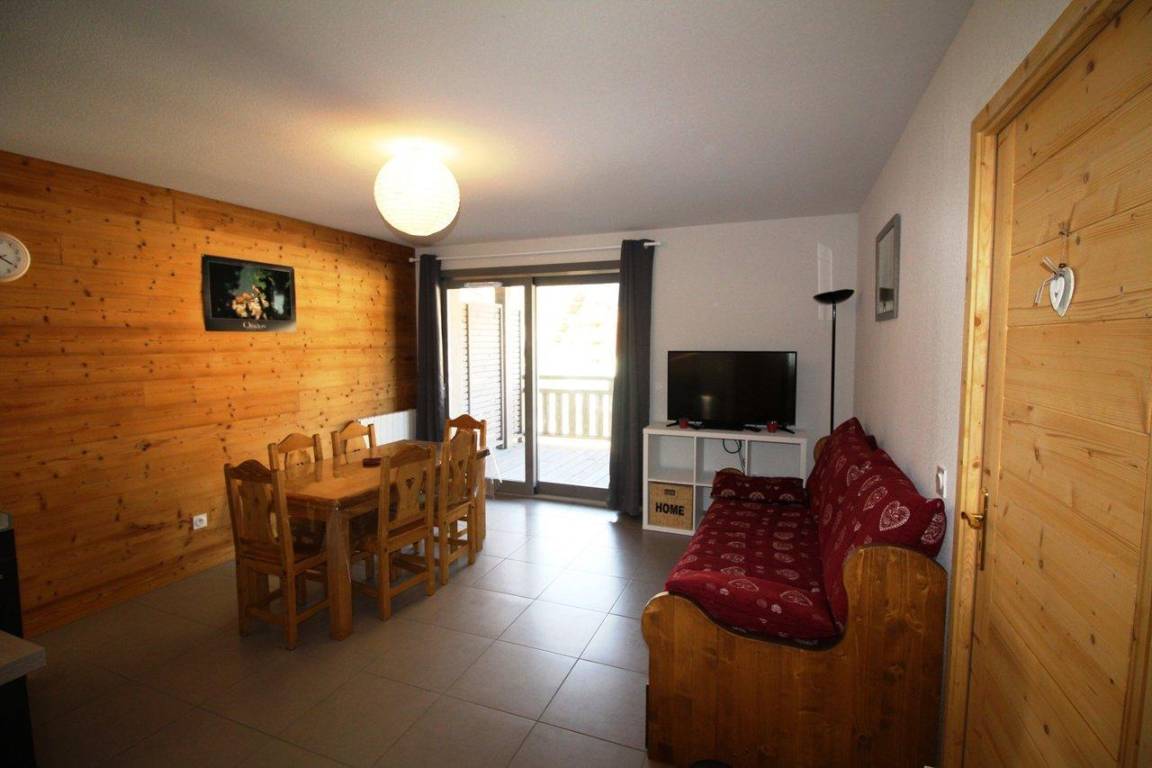 Fläche von ungefähr 41 m². 3te Etage. Orientierung : Ost. Blick berg und Station. Wohnzimmer mit Ausziehschlafcouch für 2 Personen. Schlafzimmer mit Doppelbett. Schlafzimmer mit 4 Stockbetten. Kochnische mit Raclettegerät, Kaffeemaschine, kleiner Backofen mit Mikrowellenfunktion, Toaster, Geschirrspülmaschine, Kühlschrank. Badezimmer mit italienische Duschkabine, WC. Balkon mit Gartentisch und -stühle. Die oberen Betten sind nicht für Kinder unter 6 Jahren geeignet.