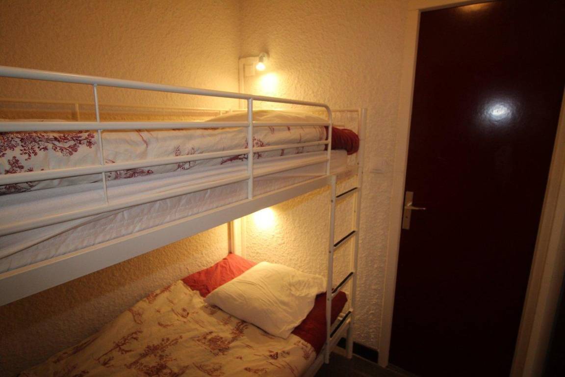 Fläche von ungefähr 17 m². 1te Etage. Orientierung : Nord. Blick offene. Wohnzimmer mit Ausziehschlafcouch für 2 Personen. offener Schlafbereich mit 2 Stockbetten. Kochnische mit Wasserkocher, Kaffeemaschine, kleiner Backofen mit Mikrowellenfunktion, Toaster, kleiner Backofen, Herdplatten, Kühlschrank. Waschräume mit Dusche, WC. Balkon mit Gartentisch und -stühle. Die oberen Betten sind nicht für Kinder unter 6 Jahren geeignet.