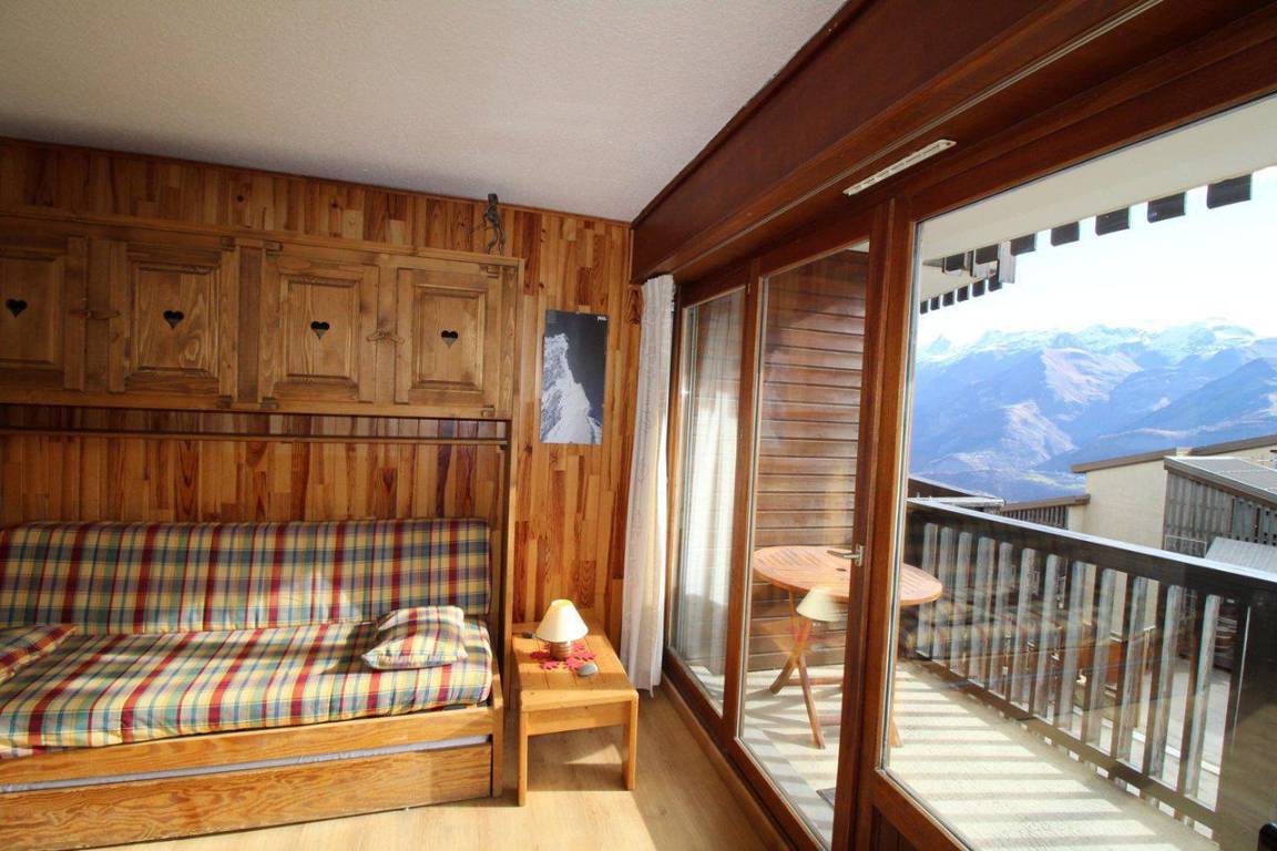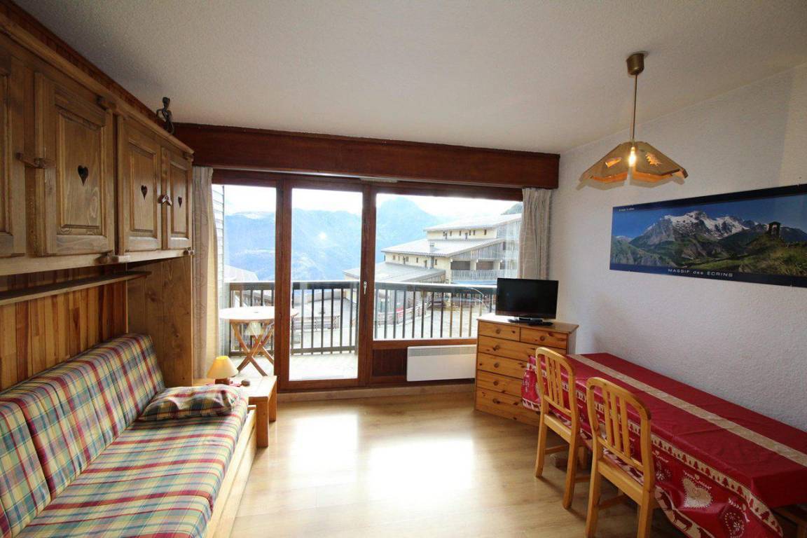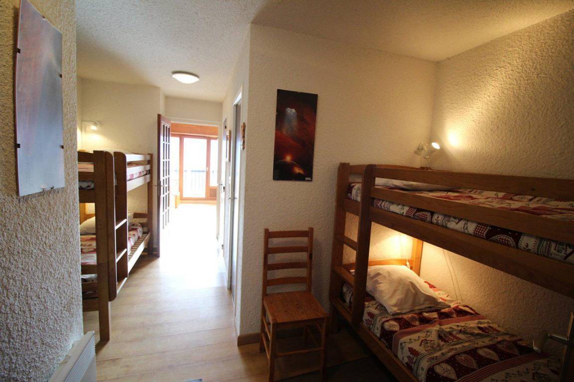 Fläche von ungefähr 32 m². 2te Etage. Orientierung : Süd. Blick berg (Glacier de la Meije). Wohnzimmer mit Ausziehschlafcouch für 2 Personen. 2 offene Schlafbereiche mit 2 Stockbetten. Kochnische mit Fonduegerät, kleiner Backofen mit Mikrowellenfunktion, Geschirrspülmaschine, kleiner Backofen, elektronische Herdplatten, Kühlschrank. Badezimmer mit Badewanne. separates WC. Balkon mit Gartentisch und -stühle. Die oberen Betten sind nicht für Kinder unter 6 Jahren geeignet.