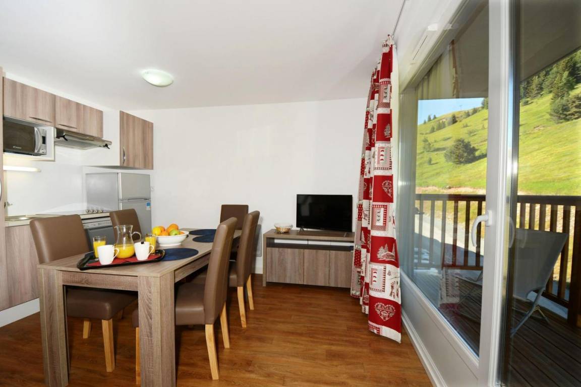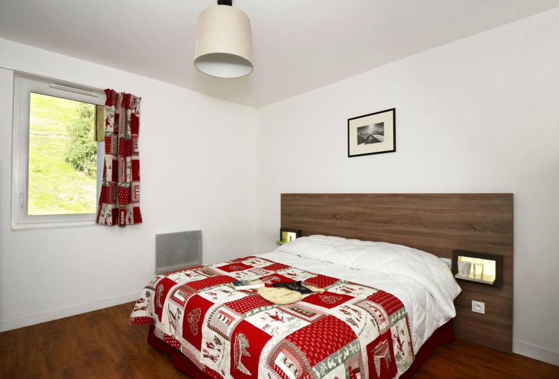 Fläche von ungefähr 44 m². Wohnzimmer mit Ausziehschlafcouch für 2 Personen. offener Schlafbereich mit 2 Stockbetten. Schlafzimmer mit Doppelbett. Kochnische mit Wasserkocher, Kaffeemaschine (capsules), Toaster, Geschirrspülmaschine, Mikrowellenherd, 2 Glaskeramikkochfelder, Kühlschrank. Badezimmer. separates WC. Balkon ODER Terrasse. Die oberen Betten sind nicht für Kinder unter 6 Jahren geeignet.