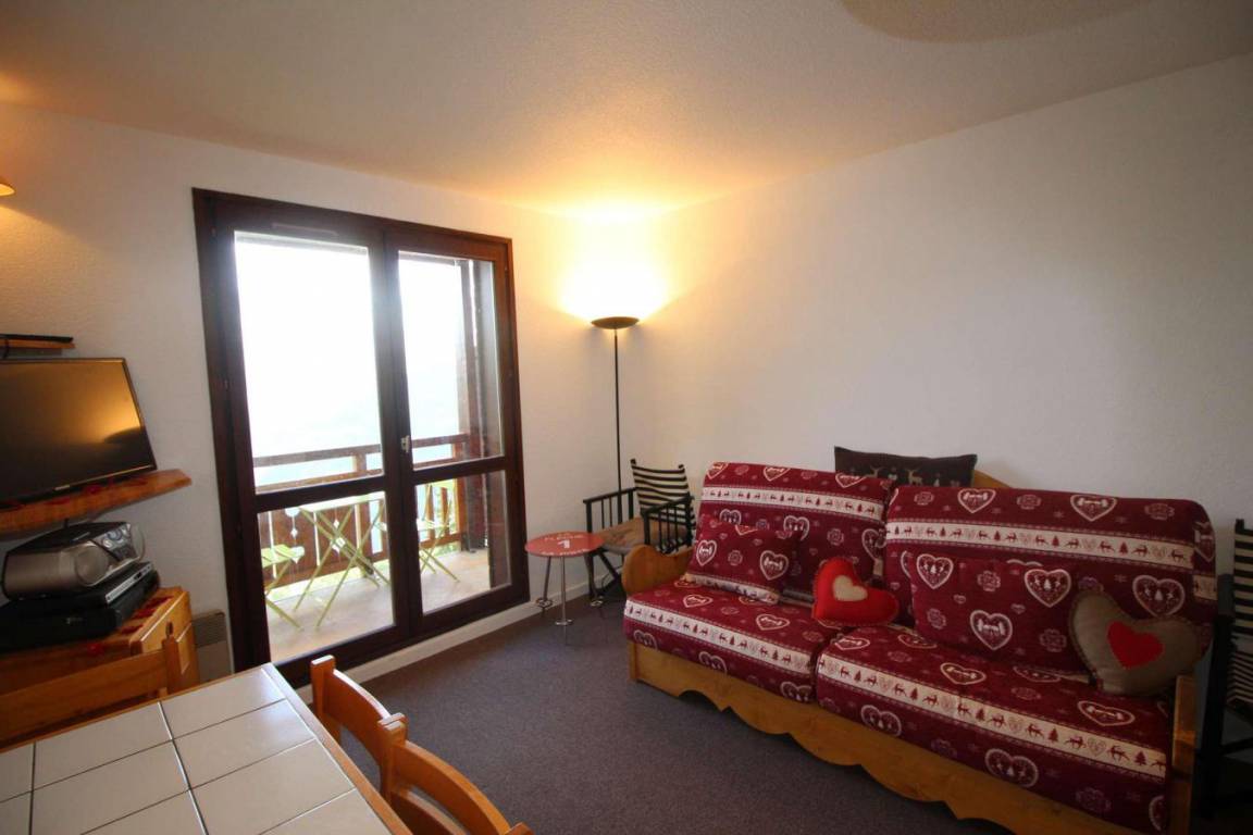 Fläche von ungefähr 35 m². 1te Etage. Orientierung : Süd-Ost, Süd. Wohnzimmer mit Klappschlafcouch. offener Schlafbereich mit 2 Stockbetten. offener Schlafbereich mit 2 Stockbetten. Kochnische mit Raclettegerät, Wasserkocher, Kaffeemaschine, Backofen, kleiner Backofen mit Mikrowellenfunktion, Toaster, Geschirrspülmaschine, Herdplatten, Kühlschrank. Badezimmer mit Badewanne, Waschmaschine. separates WC. Balkon mit Gartentisch und -stühle. Die oberen Betten sind nicht für Kinder unter 6 Jahren geeignet.
