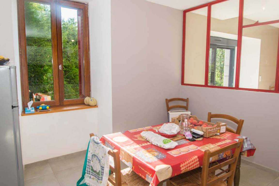 „Très bon accueil du propriétaire et de ses parents. Le gîte est situé dans un village au calme loin de l'agitation et de la circulation routière. Celui-ci est bien équipé, quoique d'un mobilier d'une autre époque, mais pour passer 2semaines de vacances, ne faisons pas la fine bouche d'autant plus que le gîte est en cours de rénovation. Un point faible cependant: La salle de bain équipée d'une douche et d'une baignoire mais d'un seul lavabo, pour 6 personnes c'est un peu juste surtout le matin. Un autre inconvénient contre lequel le propriétaire n'y peut rien: Une invasion de mouches et de fourmis. Les premières provenant d'un élevage bovin à proximité. Nous avons aussi apprécié la visite journalière d'un chien qui nous a ""adopté"", présence appréciée des enfants, ce n'est pas sûr que tout le monde aime.... chacun ses gouts.“