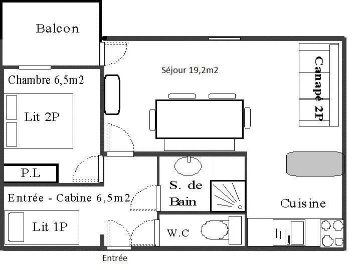 Die Residence La Corniche liegt an der Route de la Buidonnière in einer ruhigen Gegend, etwa 500 m von Sommeraktivitäten entfernt: Bogenschießen, Tennis, Minigolf ... Es gibt einen kostenlosen Skibus zu den Skiliften. Direkt vor der Residence finden Sie einen öffentlichen Parkplatz. Nr. 8 - F6 auf der Karte des Resorts. Fläche von ungefähr 37 m². Erdgeschoss. Orientierung : Ost. Diele mit 2 Stockbetten. Wohnzimmer mit Sofa. Schlafzimmer mit Doppelbett. Kochnische mit Geschirrspülmaschine, Mikrowellenherd, kleiner Backofen, elektronische Herdplatten, Kühlschrank. Waschräume mit Waschbecken. separates WC. Balkon. Die oberen Betten sind nicht für Kinder unter 6 Jahren geeignet.