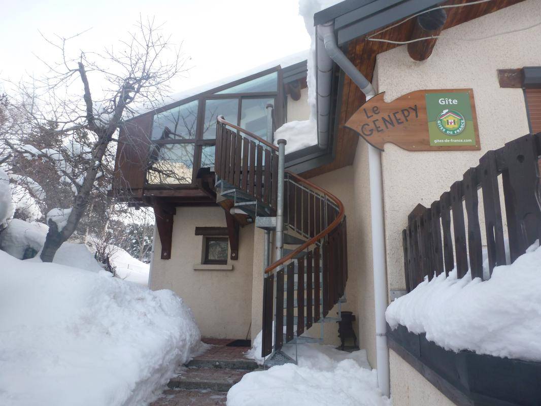 Ferienhaus im Haus des Eigentümers. 1. Stock: Wohnzimmer-Küche mit Wohnbereich (1 Doppelschlafsofa 140x190 cm), 1 Schlafzimmer (2 Einzelbetten 90x190 cm), Badezimmer (Dusche), Terrasse-Veranda, Grundstück. Skigebiet Aussois auf 500 m. La Norma 10 km, Val Fréjus 17 km. Langlaufloipen 1 km. In La Norma entwickeltes Gewässer.