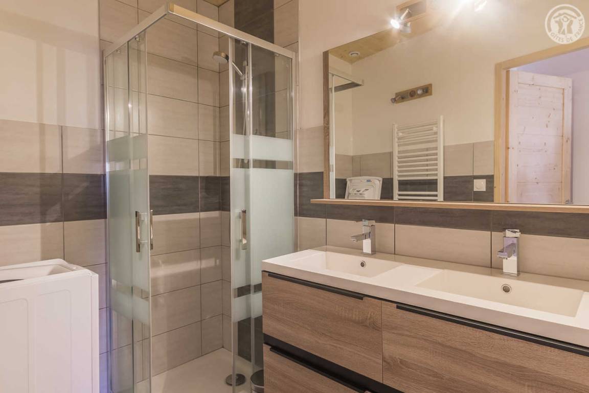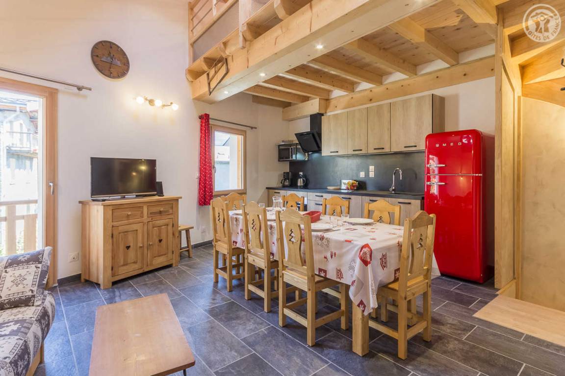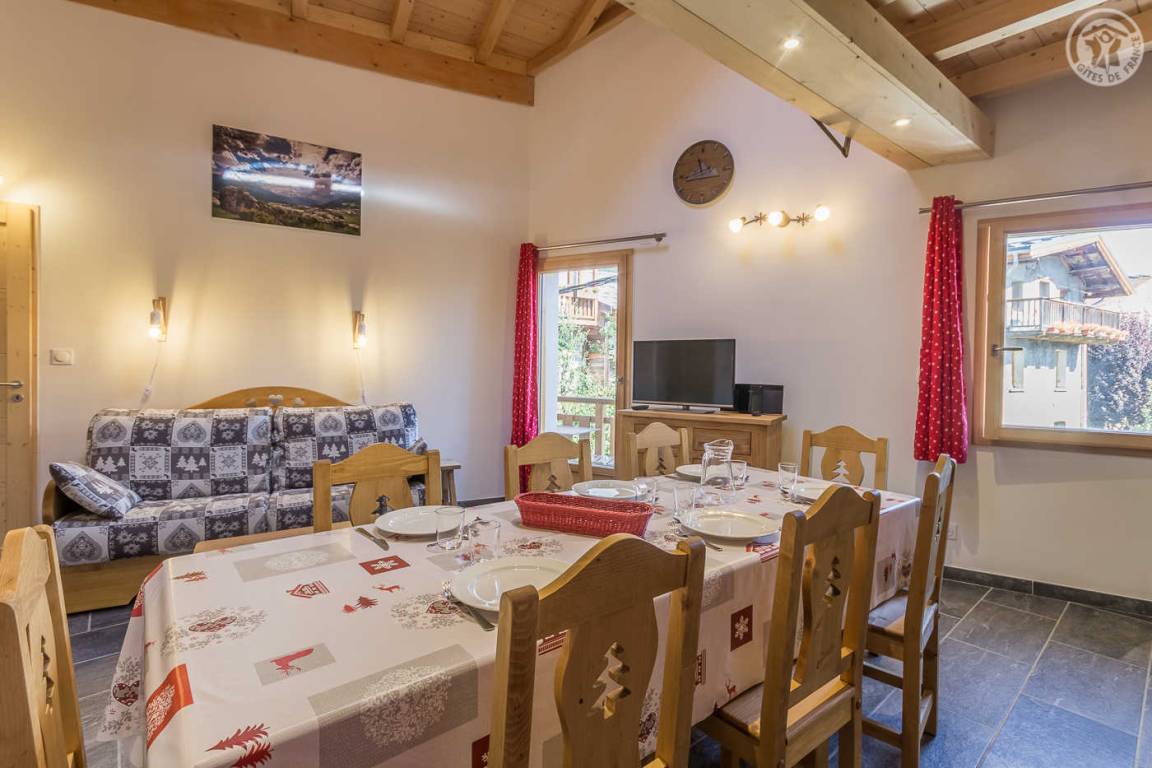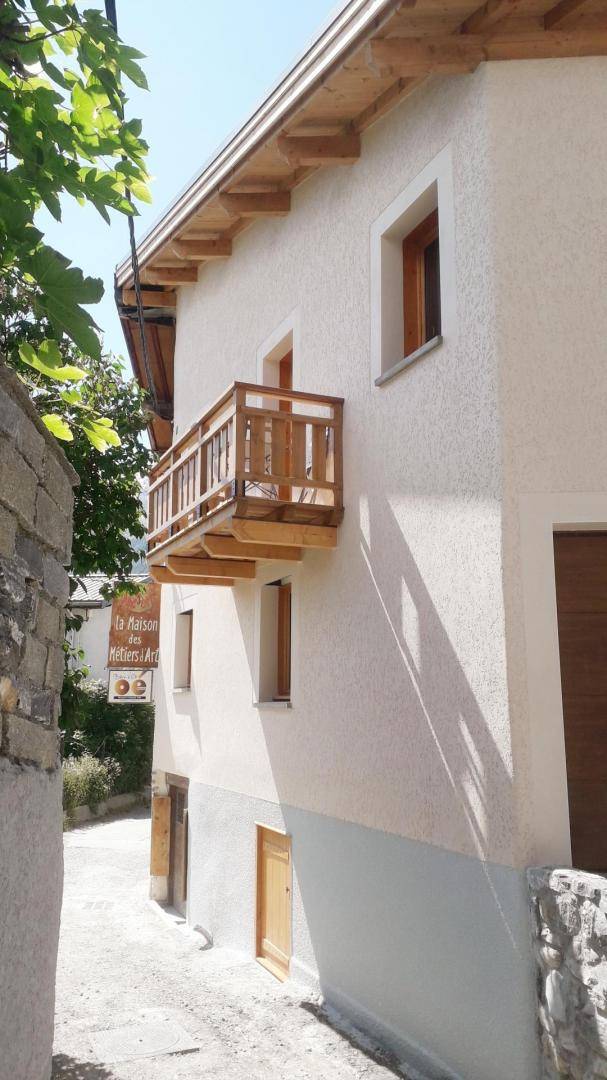 Haus bestehend aus den 2 Eigentümerwohnungen. Cottage auf 3 Ebenen. 1. Stock: 1 Schlafzimmer mit WC und Waschbecken (2 Einzelbetten 90 x 190 cm). 2. Stock: Wohnzimmer-Küche-Wohnbereich mit Zugang zu einem Balkon (1 Rapido Express Schlafsofa für 2 Personen), 1 Schlafzimmer (1 Doppelbett), Badezimmer (Dusche und 2 Waschbecken), separates WC. 3. Etage: Zwischengeschoss mit Platz im Wohnzimmer (2 Einzelbetten). Privater Außenbereich mit Zugang vom Land der Eigentümer. Im Winter öffentlicher Parkplatz 50 m. Im Sommer privater Parkplatz vor der Hütte. Gemeinschaftsraum für Fahrräder und Skier.