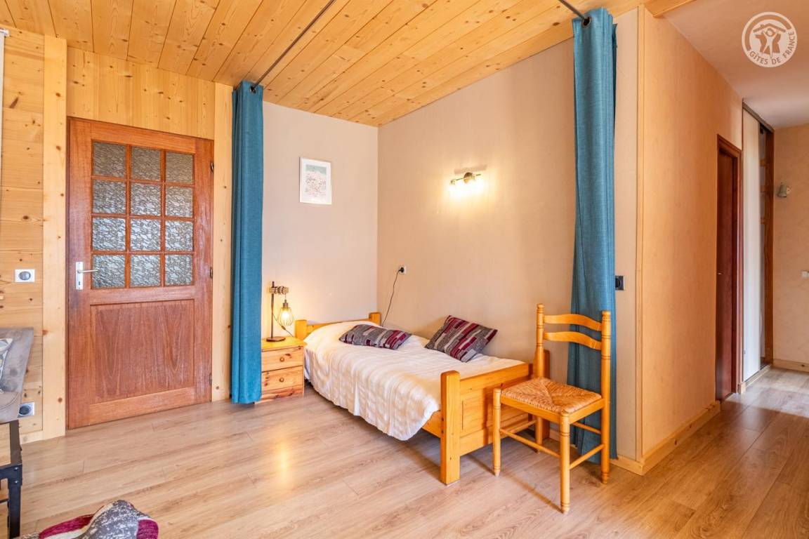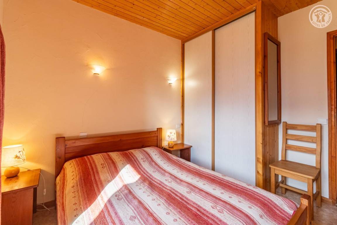 Ferienhaus im Erdgeschoss der Residenz (unabhängiger Zugang), bestehend aus einem Eingang mit Skiraum, einem Wohn-/Küchenbereich (1 BZ-Schlafsofa für 2 Personen und 1 Einzelbett mit Vorhang), 2 Schlafzimmern (2 Etagenbetten). für 1 Person 80x190 cm / 1 Bett für 2 Personen 140x190 cm), ein Badezimmer (Dusche) und separates WC. Balkon. 2 Parkplätze im Keller.