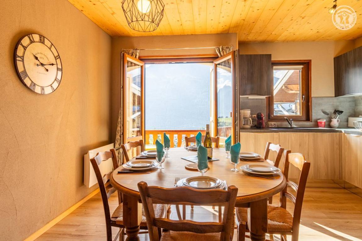 Apartment in einer Residenz auf den Höhen des Resorts, gegenüber den Skipisten. Zugang zum Zentrum des typischen alten Dorfes zu Fuß (400 m) oder mit dem Shuttle (nur im Winter) für Geschäfte und Dienstleistungen. Angenehm renovierte Wohnung. Südbalkon mit atemberaubender Aussicht auf das Dorf und die umliegenden Berge.