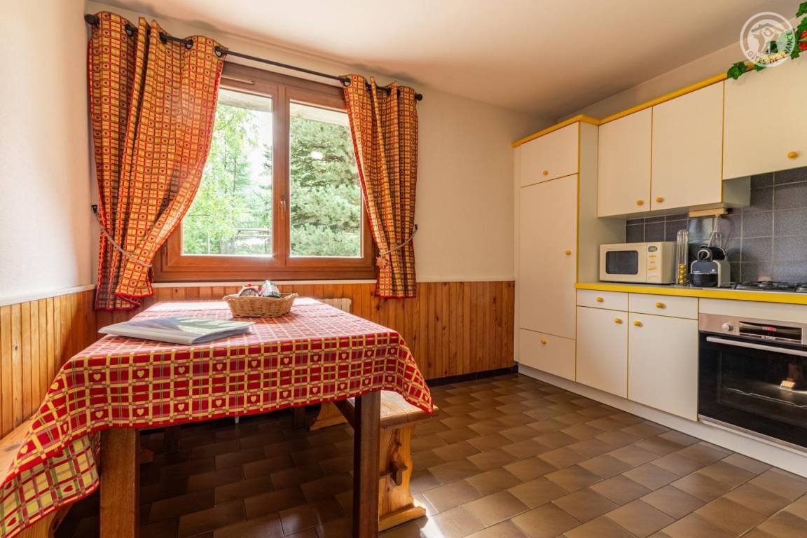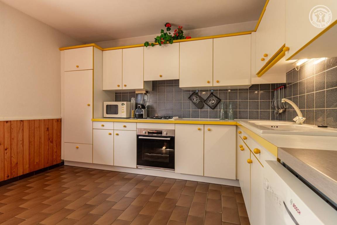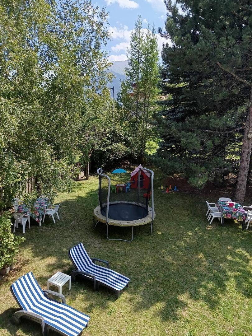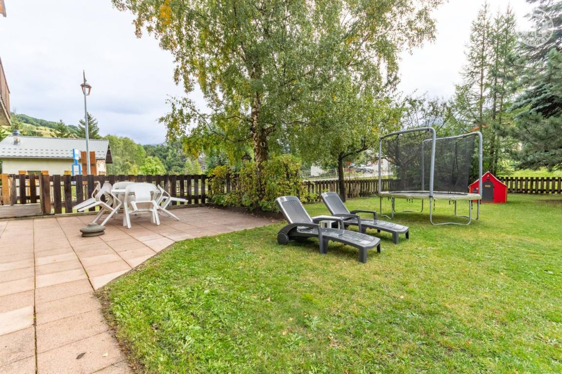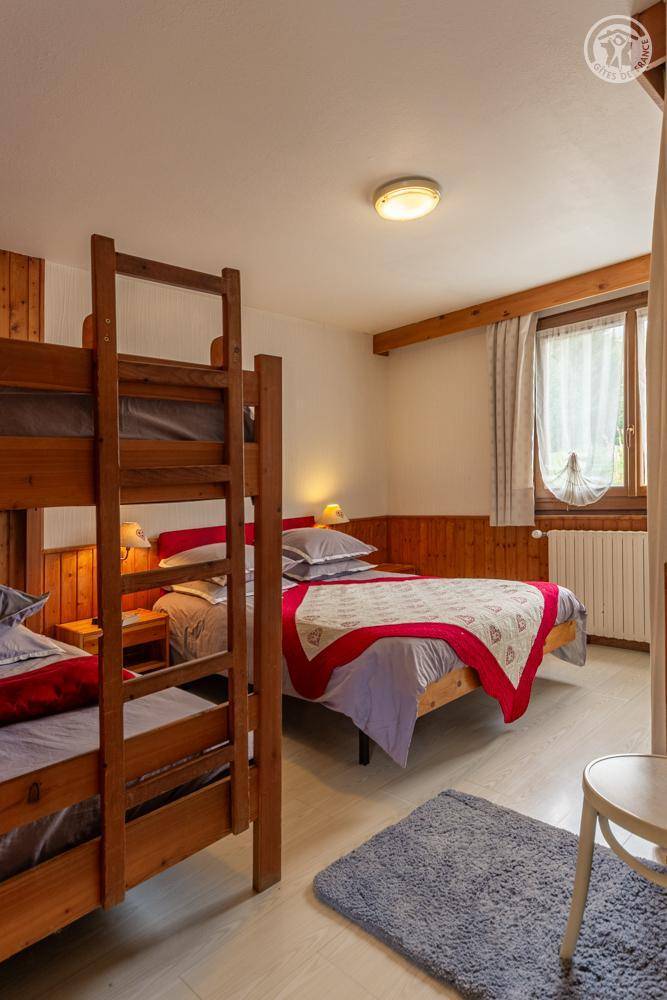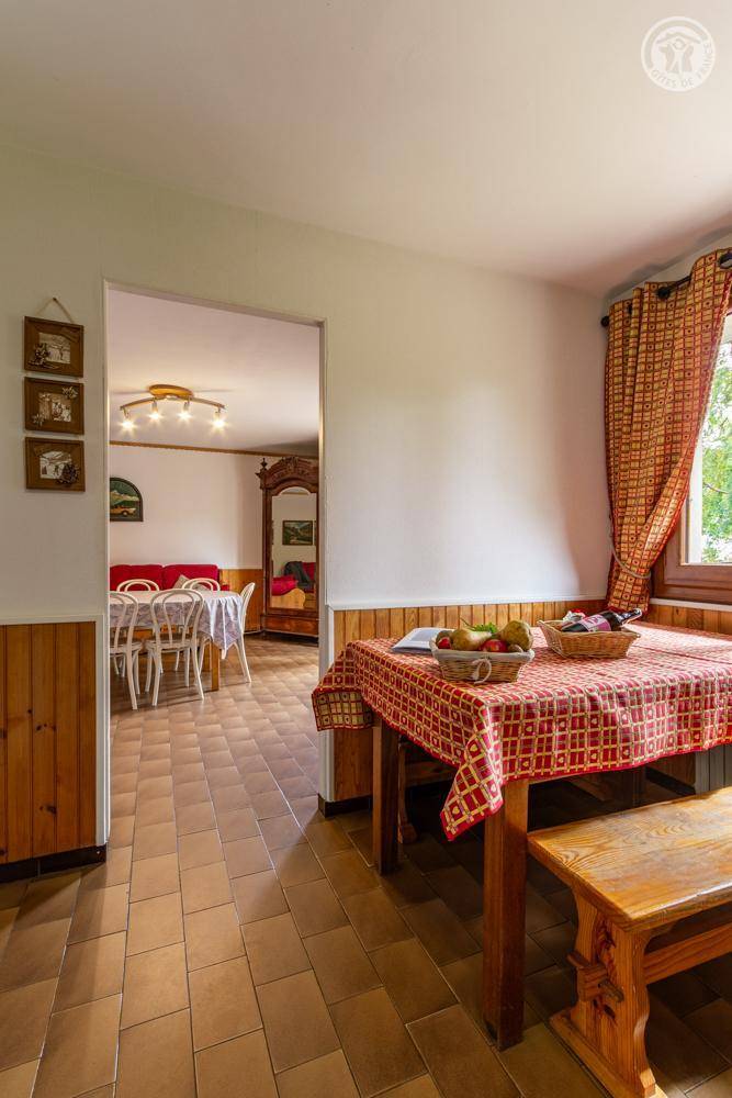 Im Erdgeschoss eines Hauses mit der Wohnung des Eigentümers und einer weiteren Touristenvermietung. Auf einer Ebene: Wohnzimmer (4 Einzelbetten 90x190 cm), separate Küche, Schlafzimmer (1 Doppelbett 140x190 cm + 2 Etagenbetten 90x190 cm), Badezimmer (Dusche + WC). Zugang zum Gemeinschaftsgarten (Schaukel, Trampolin, Grill und Brotbackofen, Kinderhütte) mit Terrasse. Gemeinsamer Ski- und Fahrradraum, Waschküche (gemeinsame Waschmaschine und Trockner). 2 private Parkplätze vor dem Haus.
