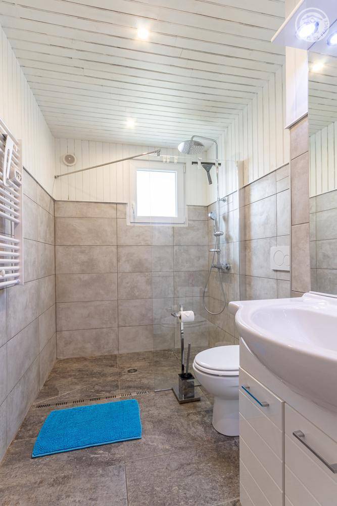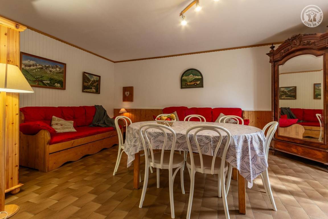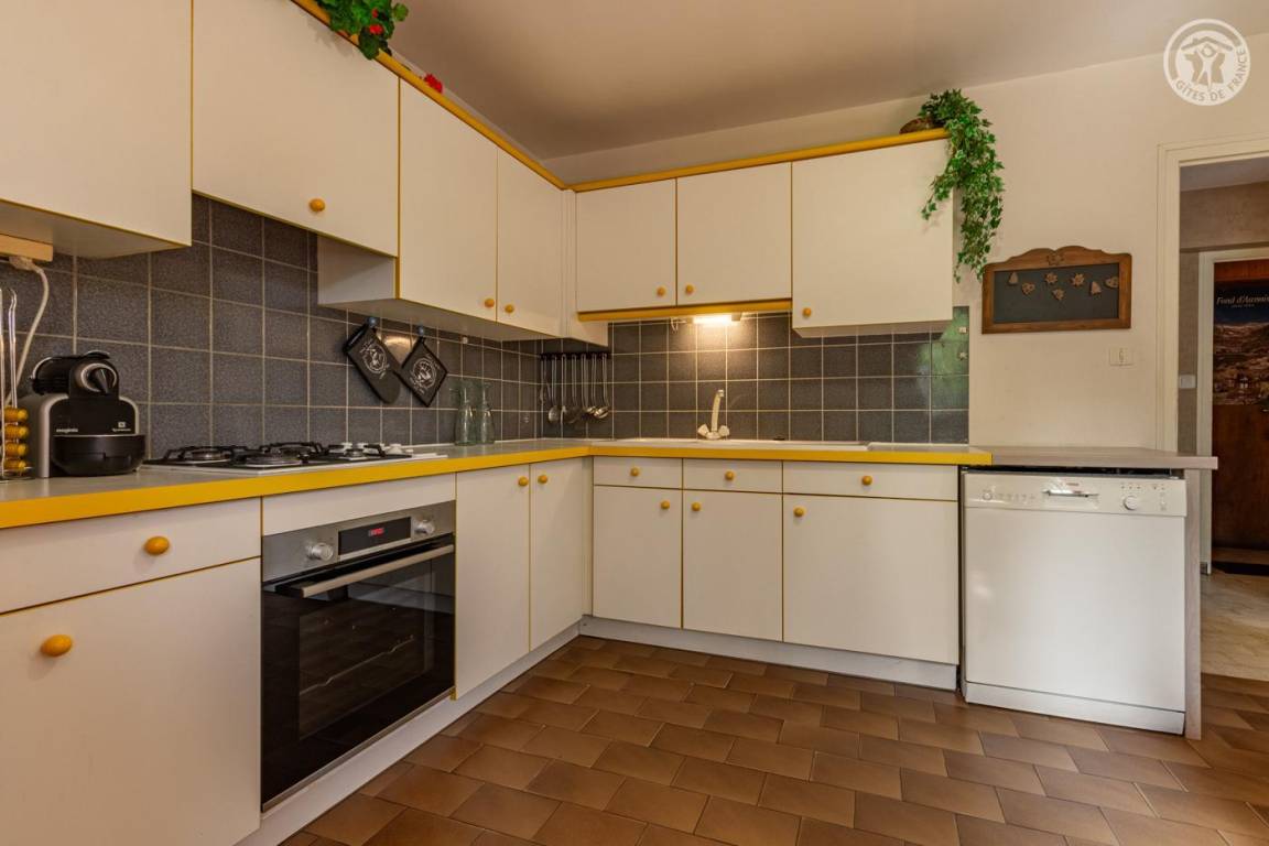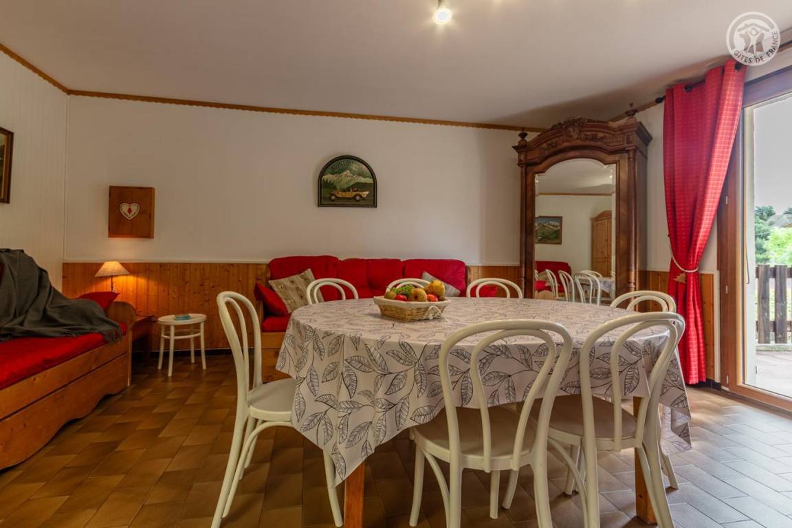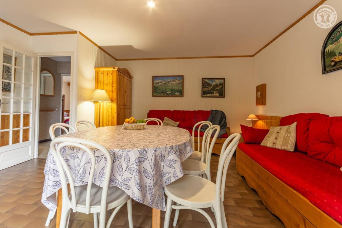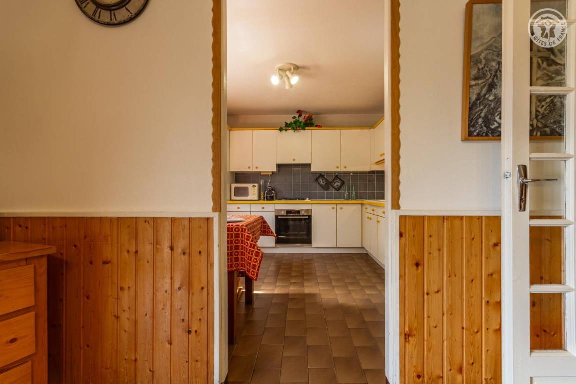 Im Erdgeschoss eines Hauses mit der Wohnung des Eigentümers und einer weiteren Touristenvermietung. Auf einer Ebene: Wohnzimmer (4 Einzelbetten 90x190 cm), separate Küche, Schlafzimmer (1 Doppelbett 140x190 cm + 2 Etagenbetten 90x190 cm), Badezimmer (Dusche + WC). Zugang zum Gemeinschaftsgarten (Schaukel, Trampolin, Grill und Brotbackofen, Kinderhütte) mit Terrasse. Gemeinsamer Ski- und Fahrradraum, Waschküche (gemeinsame Waschmaschine und Trockner). 2 private Parkplätze vor dem Haus.
