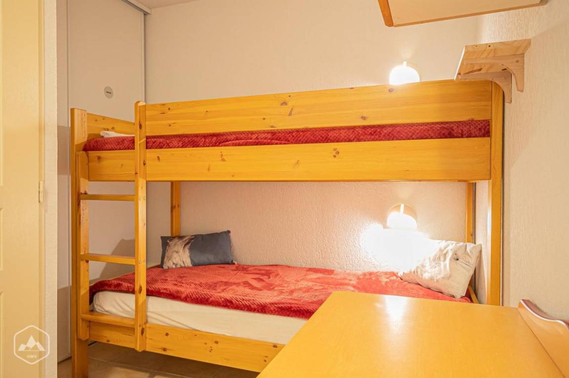 Die Residenz ist mit einem Aufzug ausgestattet. Fläche von ungefähr 36 m². Erdgeschoss. Orientierung : Nord. Blick begrenzt. Niveau 0 : Wohnzimmer mit BZ-Sofas. Kochnische mit Multifunktions-Backofen, Waschmaschine, Geschirrspülmaschine, Mikrowellenherd, 4 Induktionsherdplatten, Kühl-Gefrier-Kombination. Badezimmer mit Badewanne, Waschbecken, Handtuchtrockner. separates WC. Niveau 1 : Schlafzimmer mit Doppelbett. offener Schlafbereich mit 2 Stockbetten. Die oberen Betten sind nicht für Kinder unter 6 Jahren geeignet.