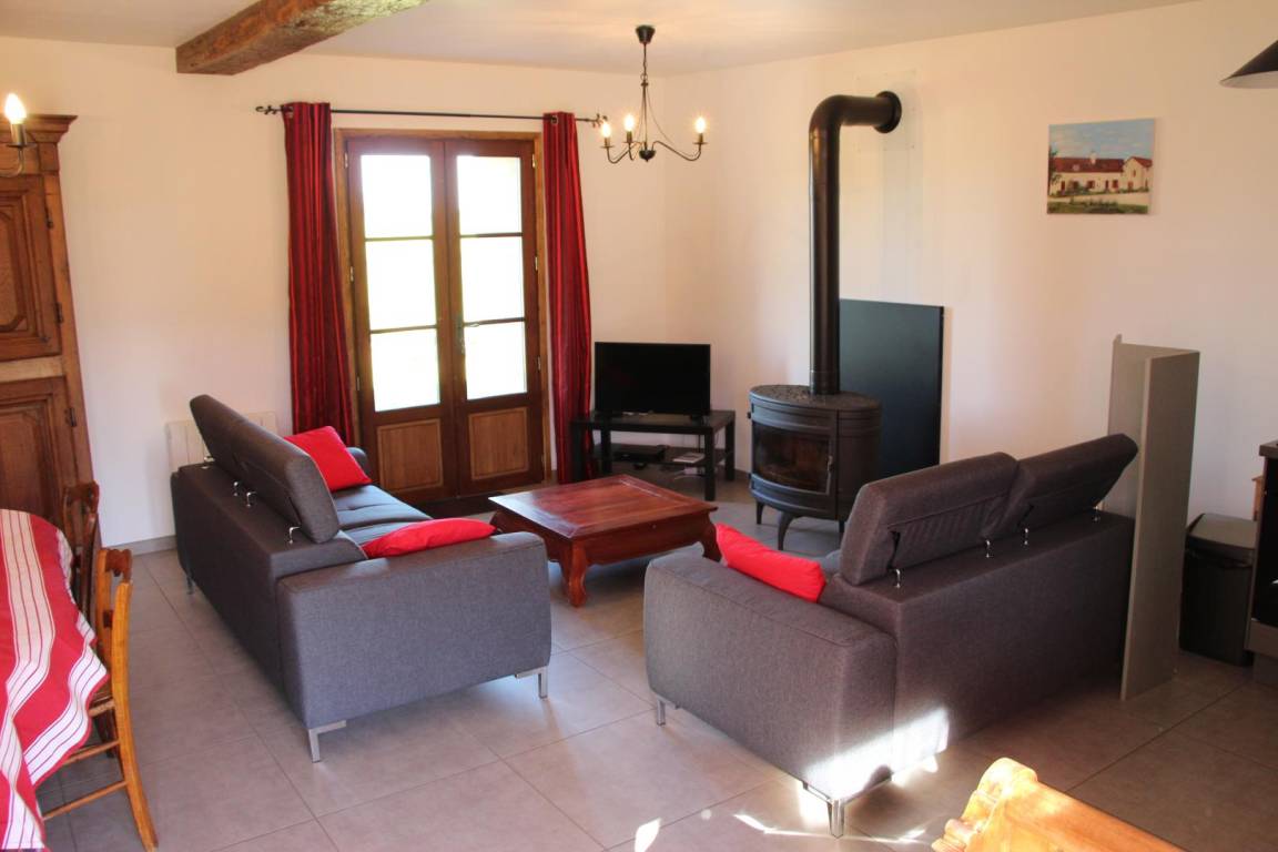 Alte Scheune, komplett renoviert in einem Anwesen mit Charakter, auf einem Vorgebirge gelegen, das die perfekt erhaltene Bocage dieser Ecke des Bourbonnais beherrscht. Vom Gemeinschaftsgarten aus haben Sie einen schönen Blick auf das Château d'Issards und das Dorf. Diese Mietwohnung auf zwei Ebenen, die zwei Schlafzimmer umfasst, ist ideal, um neue Energie zu tanken und gleichzeitig die Nähe zur Stadt zu genießen. Erdgeschoss: Wohnzimmer, Küchenbereich, Holzofen, Badezimmer (ebenerdige Dusche), separates WC. Obergeschoss: 1 Schlafzimmer (1 Bett 160x200, 1 Einzelbett), 1 Schlafzimmer (1 Doppelbett, 1 Einzelbett) großer Treppenabsatz mit Schreibtisch. E-Heizung und Holz. Grünfläche mit nicht eingezäuntem Rasen (400 m²). Internet Zugang. Genießen Sie den Garten rund um das Anwesen, wo Kinder das Klettergerüst, den Schlitten, die Tischtennisplatte und das Trampolin nutzen können. Der Zugang zu Wanderwegen zu Fuß, mit dem Fahrrad oder zu Pferd ist direkt.