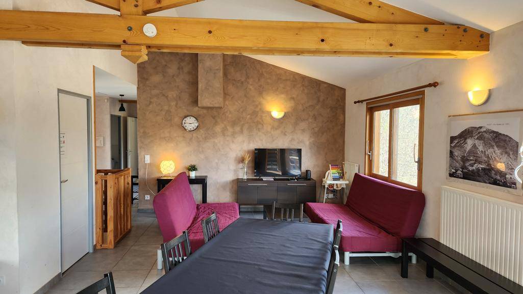 „Nous avons passé un excellent séjour en famille au Serre, la cuisine est très bien équipée et nous a permis de préparer nos repas de fêtes. Les chambres sont meublées de lits simples, tous les mêmes, comme ça pas de jaloux au moment de la distribution des lits. Les nombreuses pièces d’eau, sdb et toilettes offrent une grande praticité. La vue magnifique et cette grande pièce à vivre lumineuse ont rendu ces moments spéciaux et conviviaux. Nous reviendrons volontiers !“