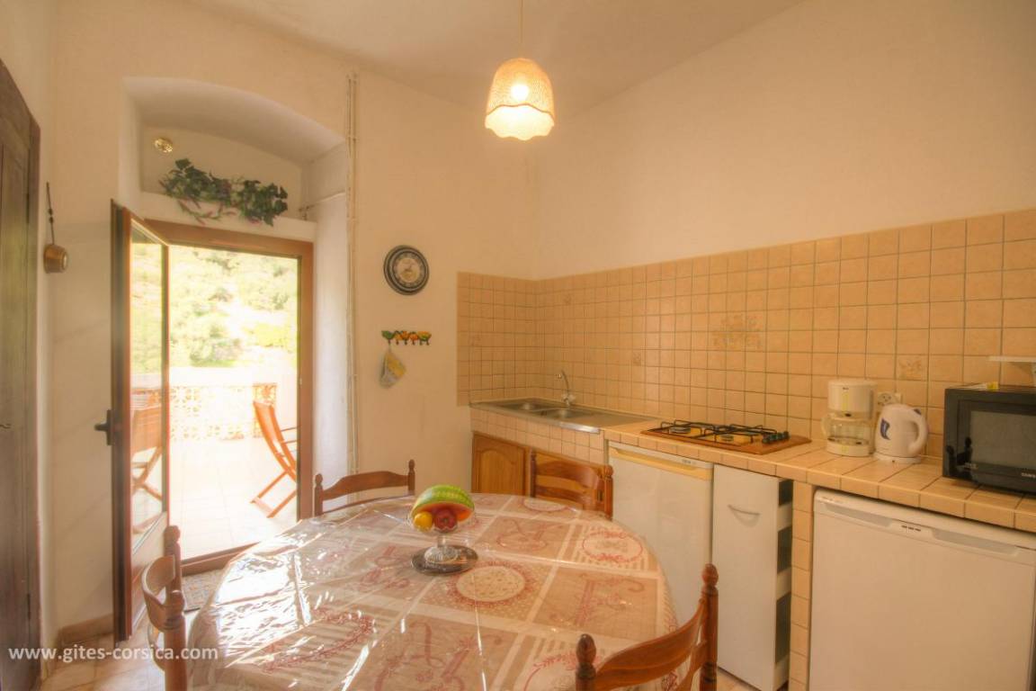 Im unteren Teil des Dorfes befindet sich eine 60 m² große Wohnung im 1. Obergeschoss eines Reihenhauses, das aus dem Ferienhaus 51361 und der Eigentümerwohnung im Erdgeschoss besteht (Zugangstreppe über den Flur, der beiden Ferienhäusern gemeinsam ist). Die Unterkunft umfasst: