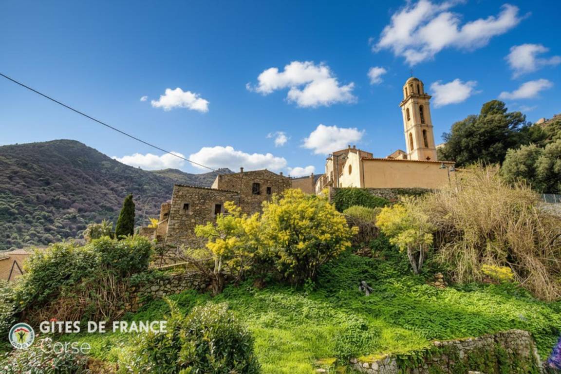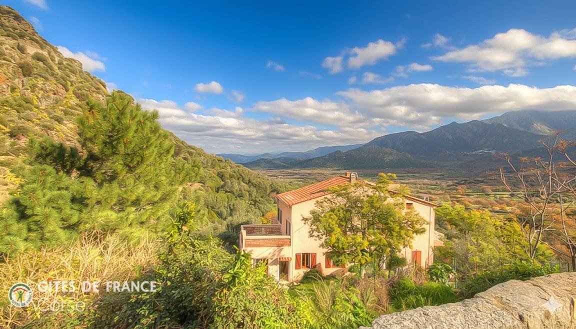 „Loin du tumulte des villes, et pas si loin des plages, voici un gîte parfaitement situé pour partir à la rencontre des magnifiques paysages de la Balagne. Ses villages perchés, ses randonnées en montagne …Ce gîte est situé dans un paysage grandiose, au sein d’une nature préservée où les milans vivent tranquillement, et les sangliers aussi ! Les balcons du gîte offrent une vue panoramique. L’île rousse, à 1/4 d’heure offre agréablement toutes les commodités.“