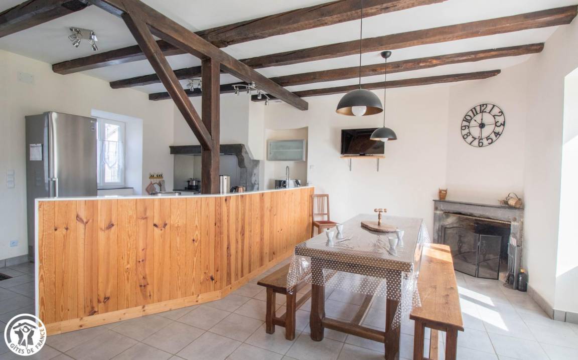 „Excellent séjour: Neige au RV et froid sec ensoleillé bien vivifiant. Accueil chaleureux des propriétaires. Grande maison avec une âme, bien chauffée, située dans un petit village animé. Bonne literie.La luge, le sauna et le baby-foot ont été très appréciés. Pensez à mettre quelques chaises à disposition car les bancs sont un peu rudes pour le 3ème âge au dos fragile !...Un grand merci pour le plateau de fromage qui nous attendait à notre arrivée !“