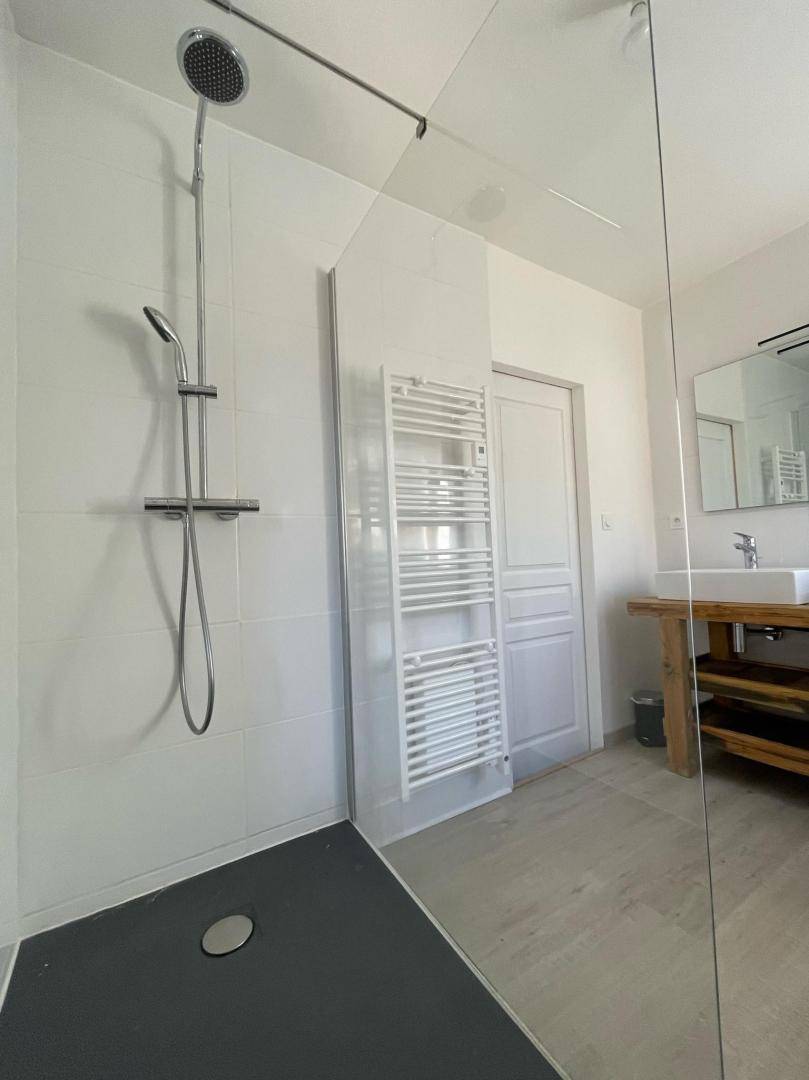 „Le salon, les 2 chambres du bas la salle de bain et la cuisine sont superbe, avec de l'équipement neuf (TV, sofa, plaques de cuisson, etc). La cuisine est fantastique et très bien équipée (petit bémol par contre sur la taille des assiettes, très petites).En revanche, le dortoir du haut où dormaient mes enfants et très mal isolé, et il y faisait extrêmement chaud (30°C et plus certaines nuits, même en fermant les stores toute la journée). C'était une semaine exceptionnellement chaude, mais ce genre de semaine deviendra de moins en moins exceptionnelle. Les petits ventilos n'étaient pas suffisants. En outre, il est difficile de se garer proche du gîte à l'arrivée et au départ, avec des voisins très sensibles. Nous nous sommes garés là où la personne qui nous a accueilli nous l'avait recommandé, mais le temps de l'état des lieux, un voisin avait appelé la police et nous avions une contravention sur notre pare-brise!Un autre petit bémol est la court intérieure de l'immeuble, qu'il faut passer pour arriver au gîte, au dernier étage. Celle-ci est un champs d'ortie à l'abandon. Dommage pour un gîte loué à ce prix.“