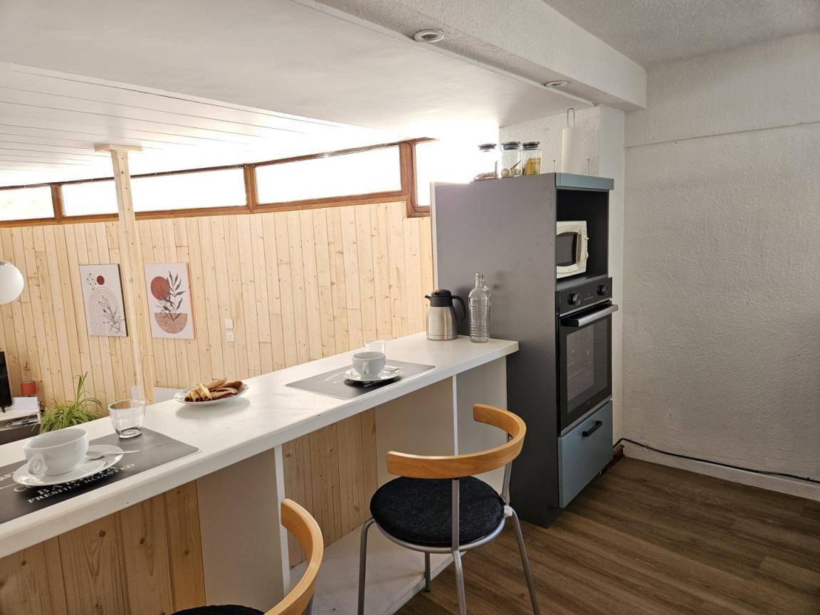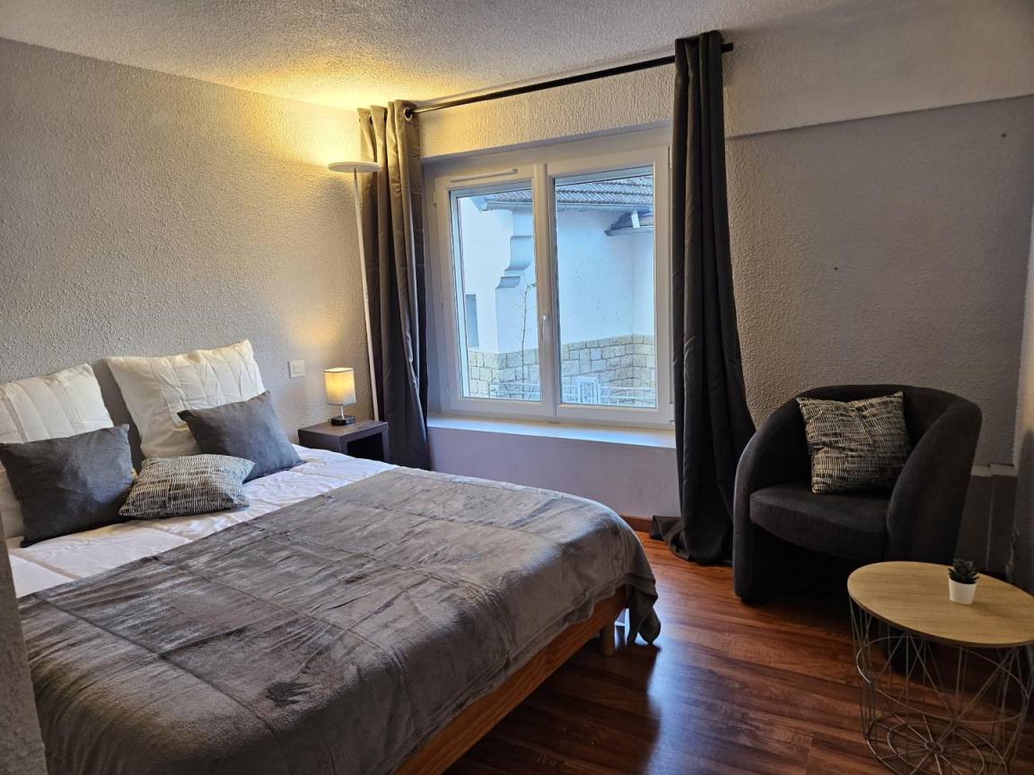 „Good Stay. Nice & spacious flat. Not completely but largely renovated. Quiet street. The view from the terrace and living room is very good. It is not the case of the 3 bedrooms looking over the Restaurants du Coeur (for 1 bedroom) and 2 large outdoor bins and an EDF electrical station (for the 2 other bedrooms). I checked this last point when booking as I saw it on the map and wanted confirmation. I was told it was the thermal station of le Teich; this is not the case. Also, the garage door (plan to change it, is on the way) is so long and complicated to open/close that we abandoned and parked in the city center close to the church for the week. Also had an issue with the check in that SHALL be done before 7.30pm (no keybox) so we had to book last minute an hotel night in Foix to accommodate (the corresponding night in the flat was nicely reimbursed by Gite de FRance after request). We had to be there at 9.30 am sharp to get the keys the day after. The check out was more flexible and we could choose between 8.30 and 12.30am.“