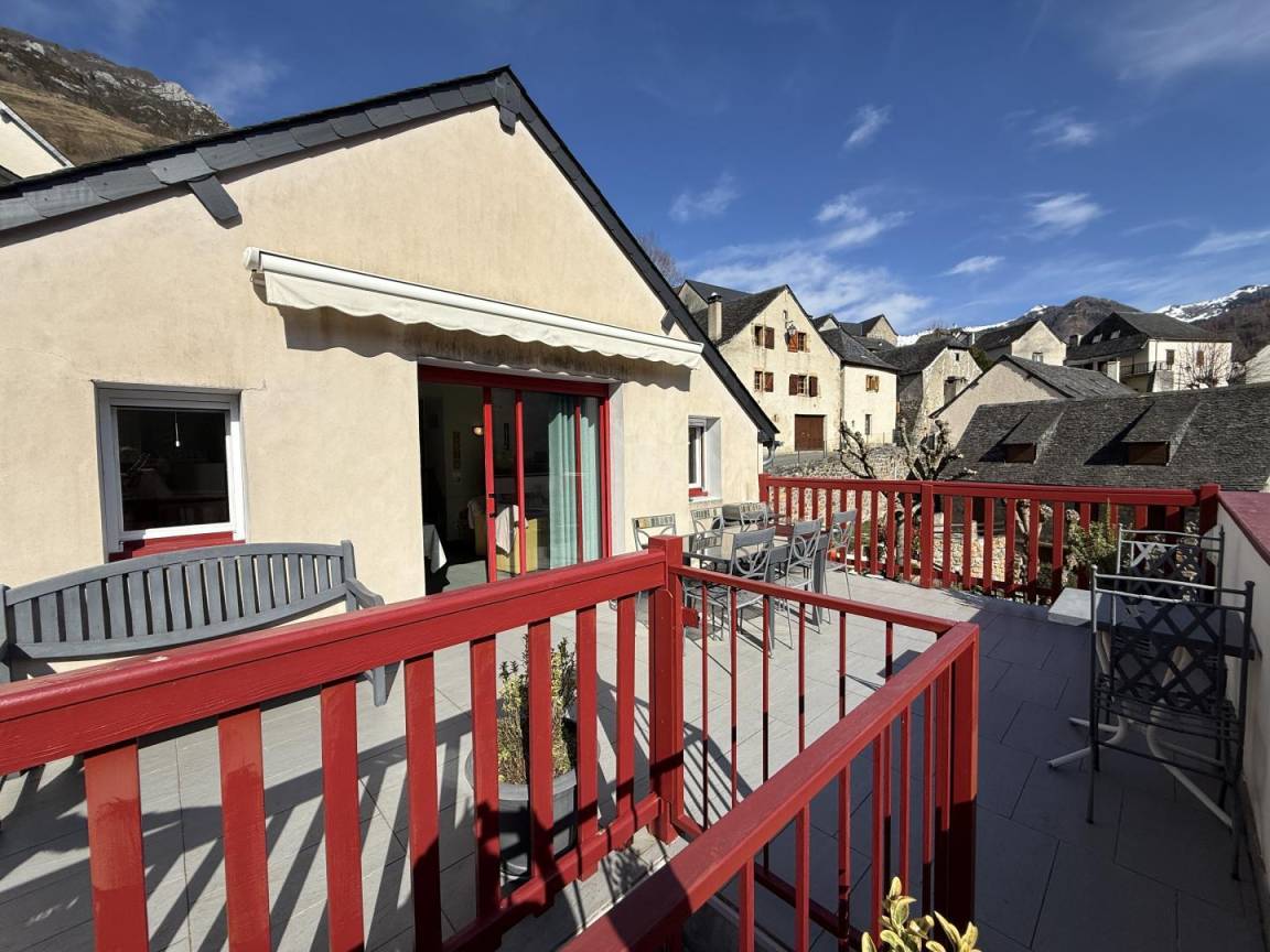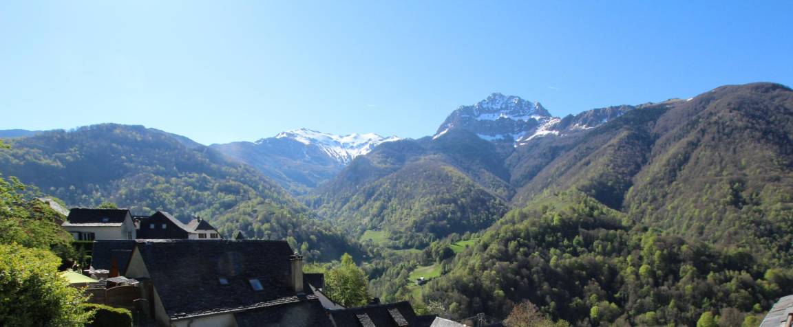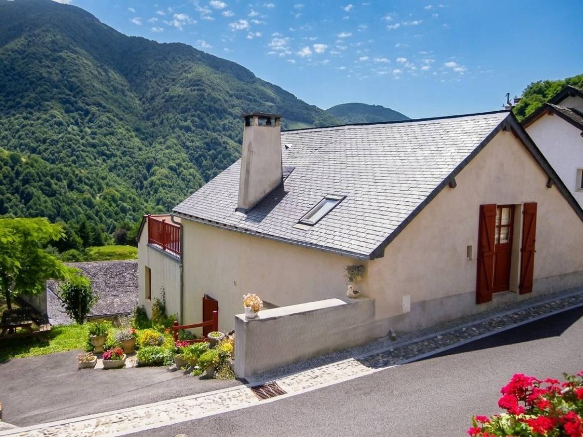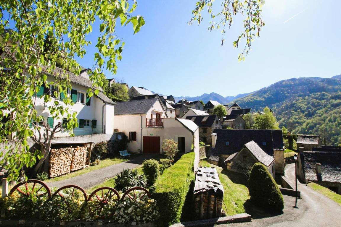 Freistehendes Haus im charmanten Dorf Aydius im Aspe-Tal, mit Blick auf den Bergon-Gipfel. Terrasse mit atemberaubender Aussicht. Hervorragende Lage. Zahlreiche Wanderwege starten direkt vom Dorf aus, der bekannteste führt zum herzförmigen Montagnon-See, einem Juwel der Pyrenäen.
