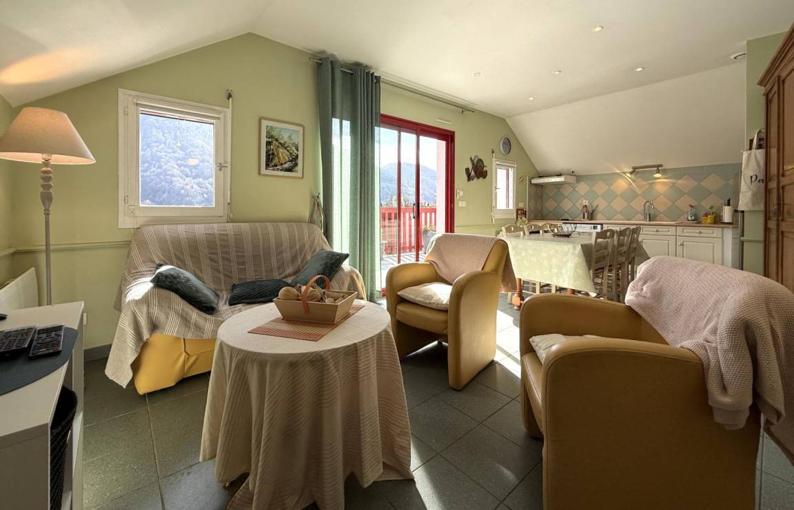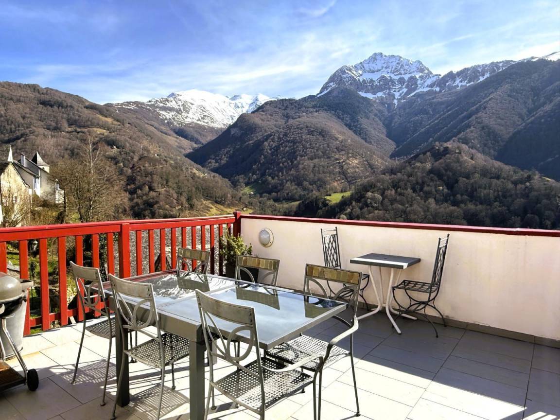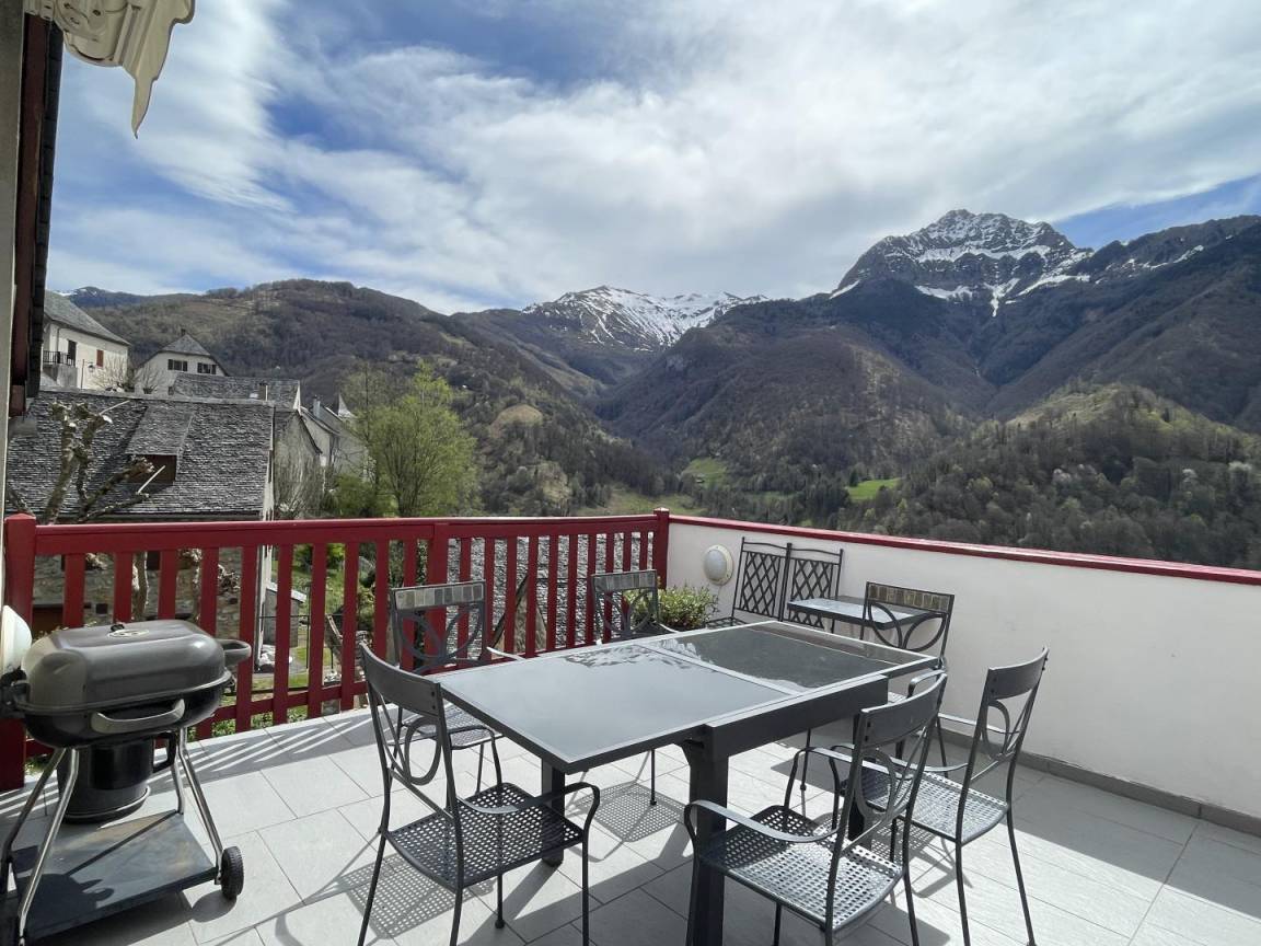 Freistehendes Haus im charmanten Dorf Aydius im Aspe-Tal, mit Blick auf den Bergon-Gipfel. Terrasse mit atemberaubender Aussicht. Hervorragende Lage. Zahlreiche Wanderwege starten direkt vom Dorf aus, der bekannteste führt zum herzförmigen Montagnon-See, einem Juwel der Pyrenäen.