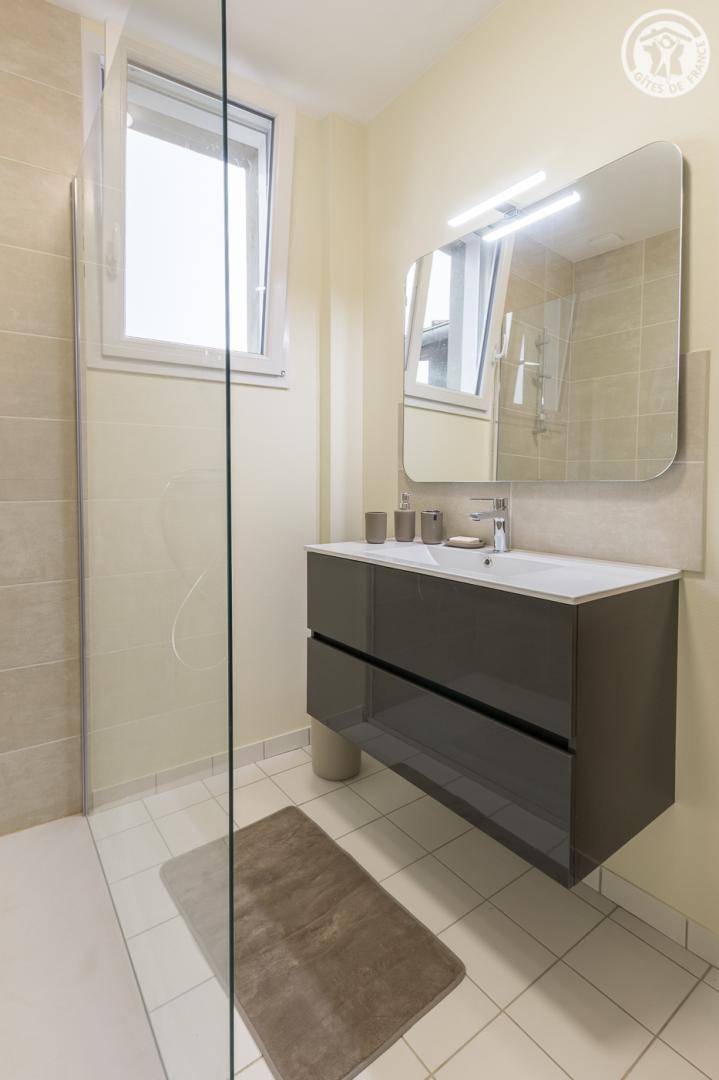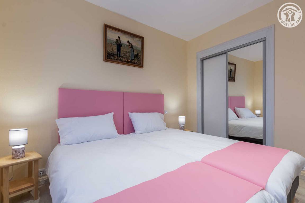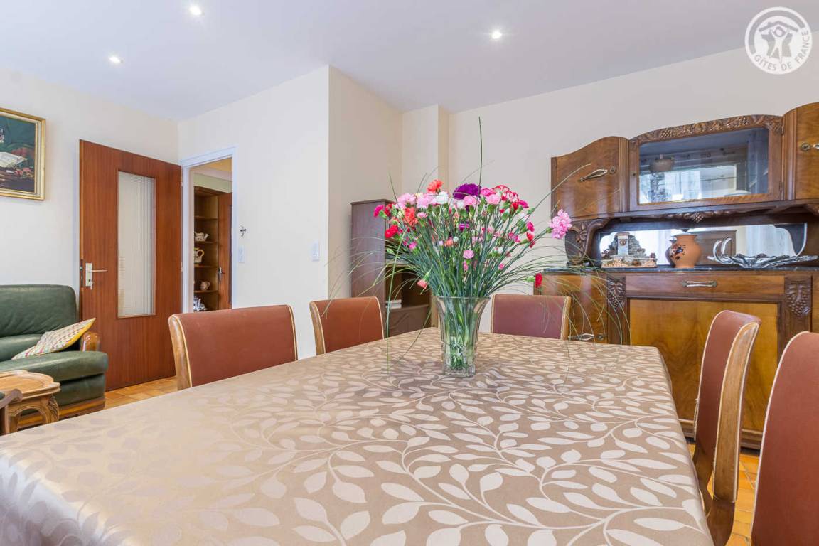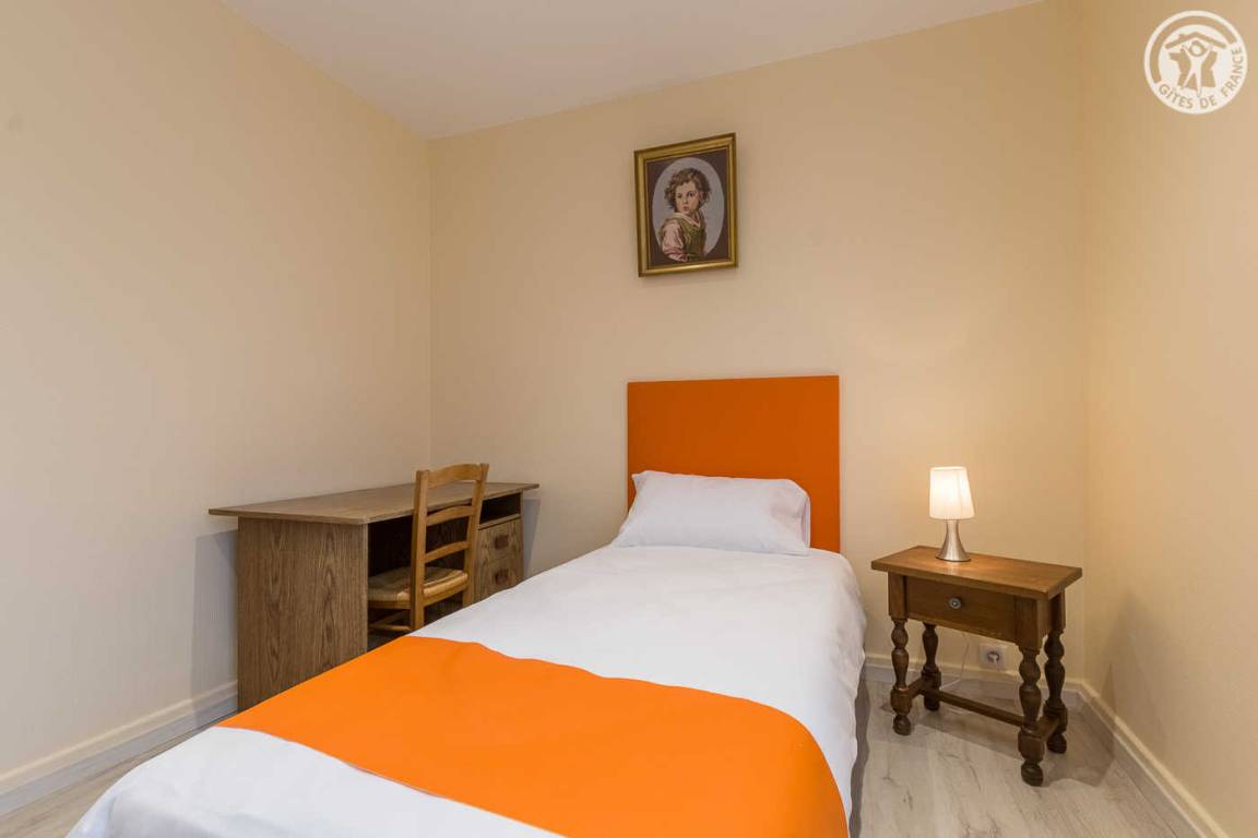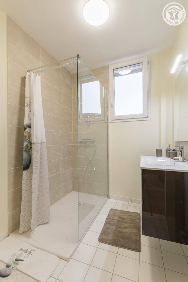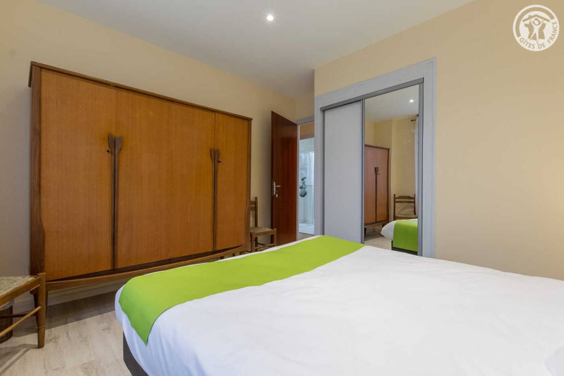 Unabhängiges Haus auf dem Grundstück der Eigentümer. Im Erdgeschoss: Garage (1 Auto), Büro, WC, 2 Schlafzimmer (1 Doppelbett 140x190 cm / 2 Einzelbetten 90x190 cm), Badezimmer (Dusche), Zugang zur Terrasse und zum Garten. Im 1. Stock: Küche, Esszimmer / Wohnzimmer, 3 Schlafzimmer (1 Doppelbett 160x200 cm / 2 Einzelbetten 80x 200 cm / 1 Einzelbett 90x190 cm), Bad (Dusche), WC getrennt.