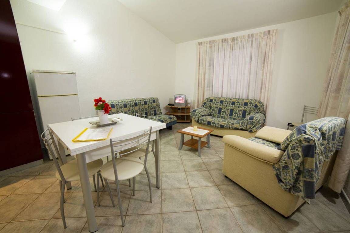Trilocale Villa 2 (75 m²) ist eine zwei-Zimmer Wohneinheit, die auf eins Stockwerk gebaut ist, mit eins Badezimmer. Hier können bis zu sechs Leute unterkommen. Einige Zimmer sind für Ihren Komfort mit Klimaanlage ausgestattet (siehe bitte die Zimmer Einzelheiten hier unten).