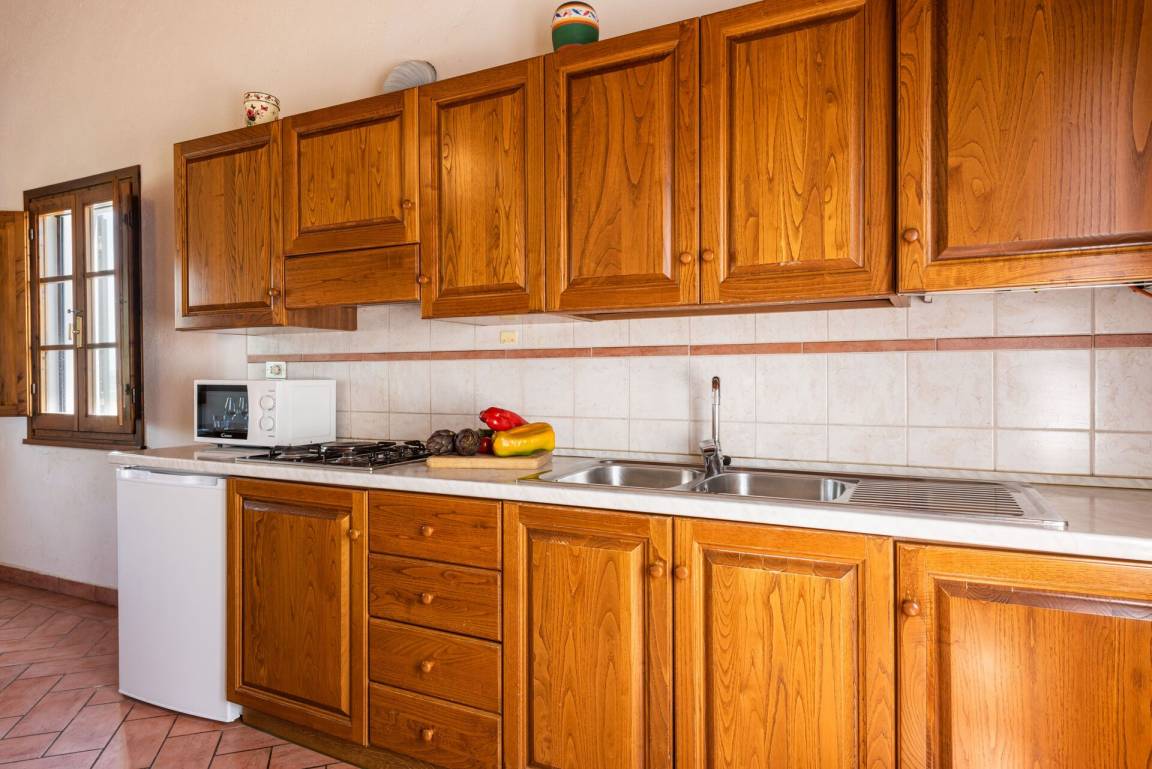 Wohnküche 3: Esstisch (Personen: 6), Kühlschrank, Tiefkühler, Mikrowelle, Herd, Italienische Kaffeemaschine, Sofa, WiFi Internet, TV.