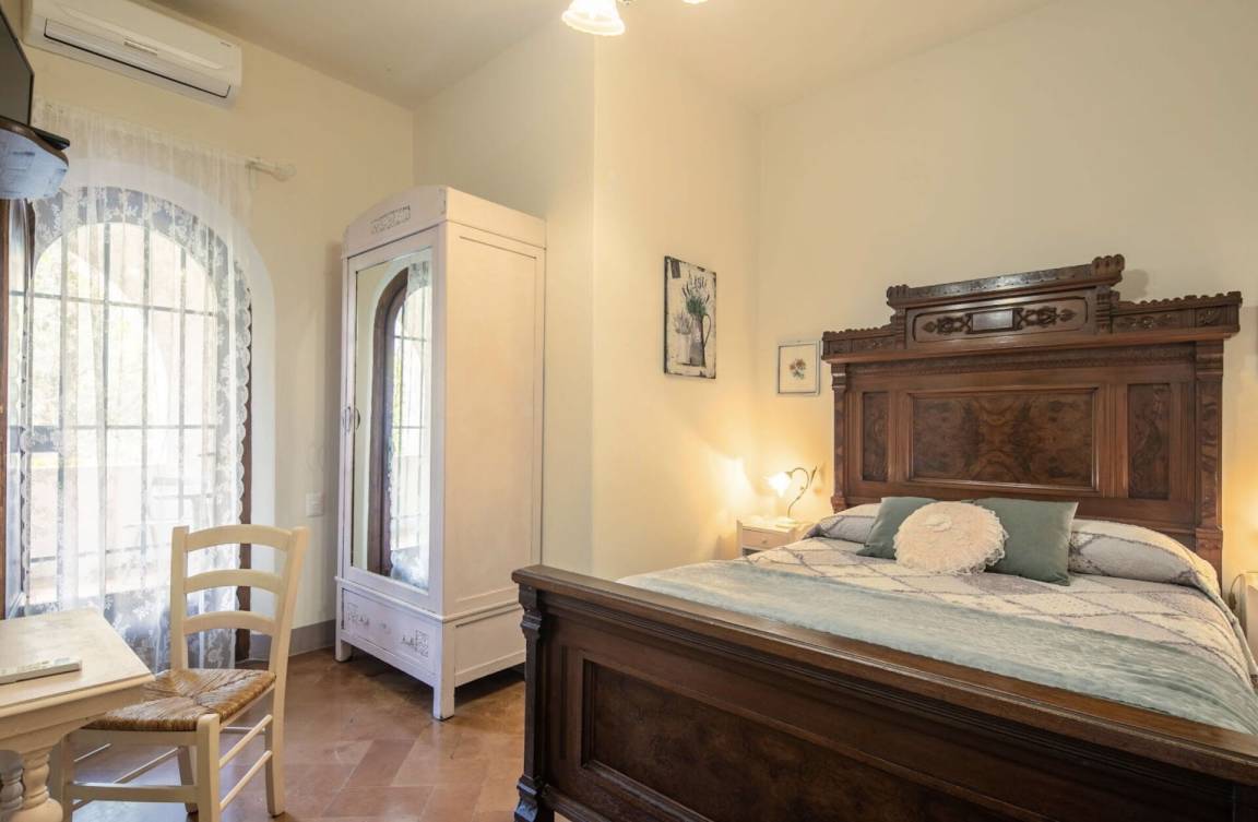 Schlafzimmer mit Bad 1 (1 m²): Doppelbett, WiFi Internet, Klimaanlage, Waschbecken, WC, Bidet, Dusche, Fön.