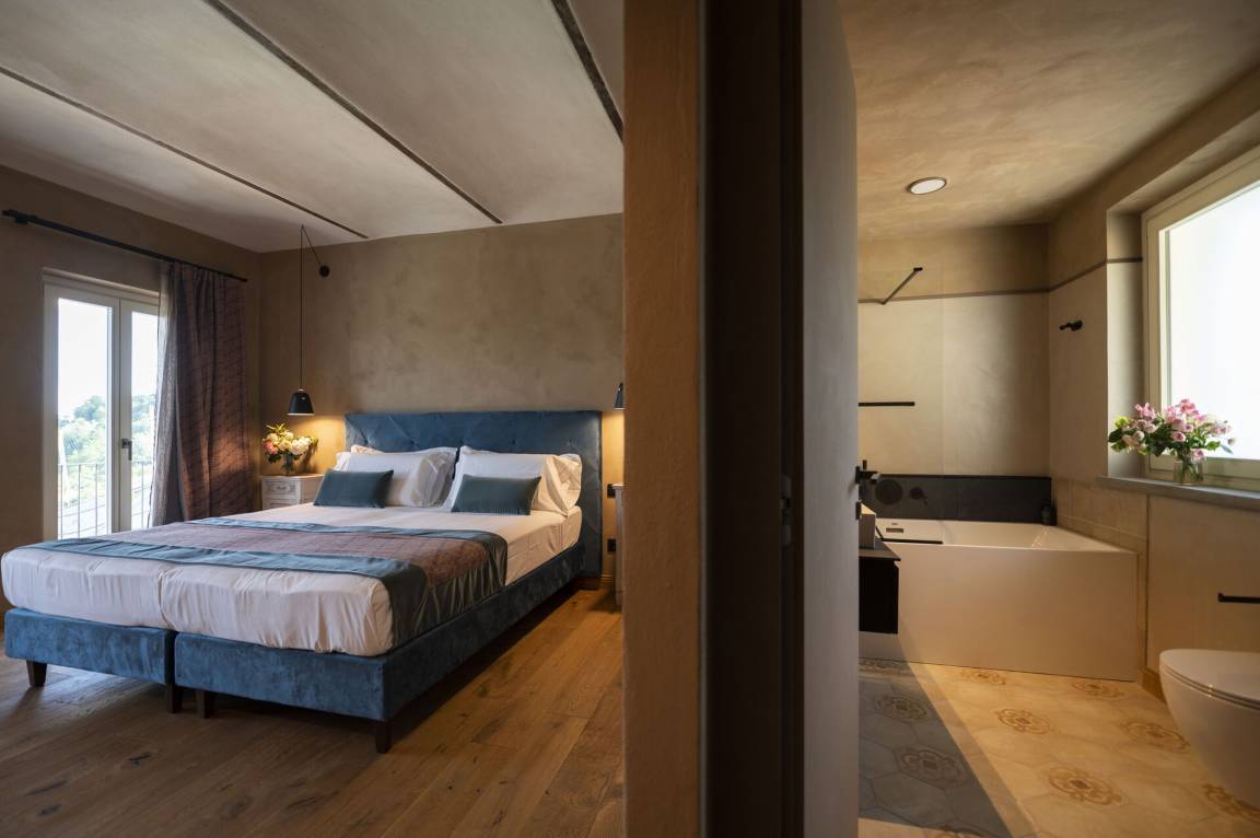 Schlafzimmer mit Bad: Doppelbett, WiFi Internet, Klimaanlage, Waschbecken, WC, Bidet, Badewanne.