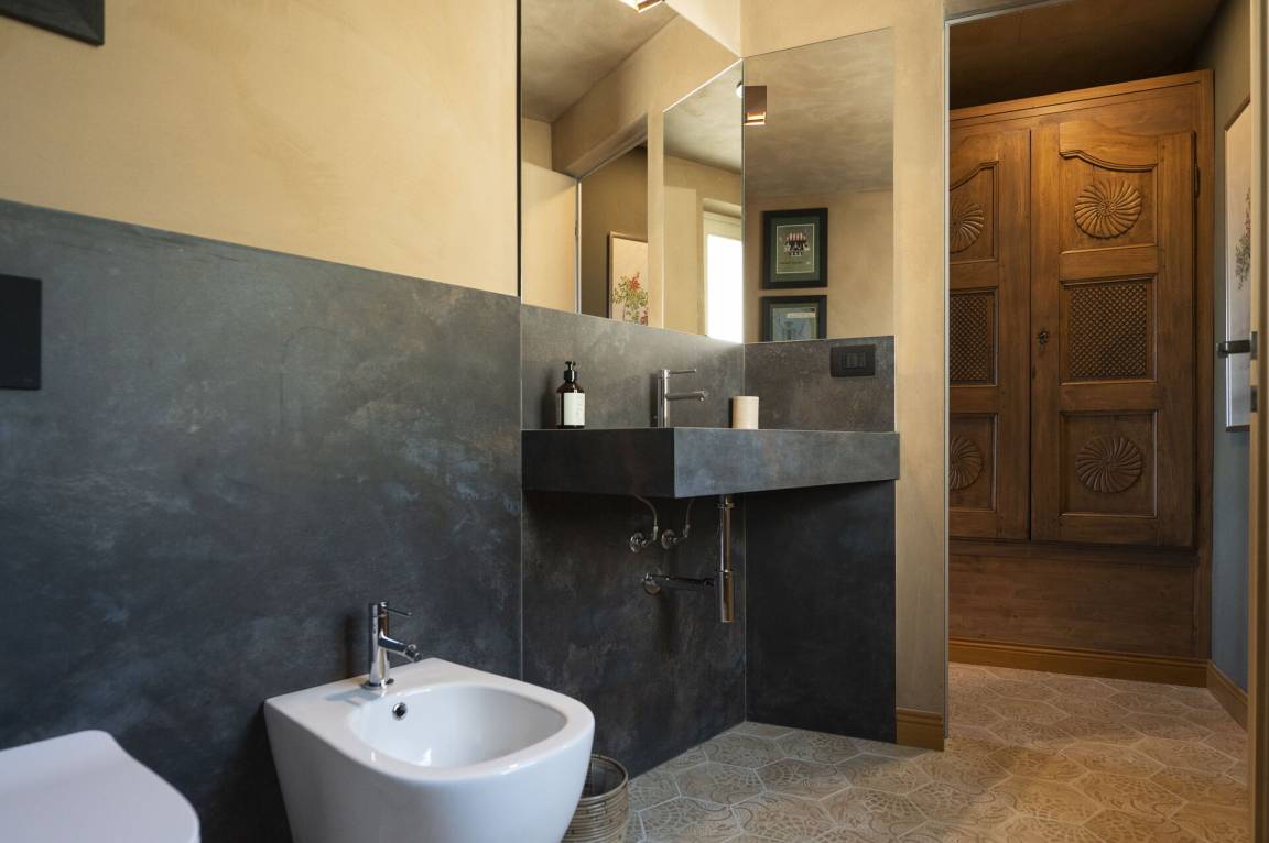Badezimmer: Waschbecken, WC, Bidet, Dusche, WiFi Internet.