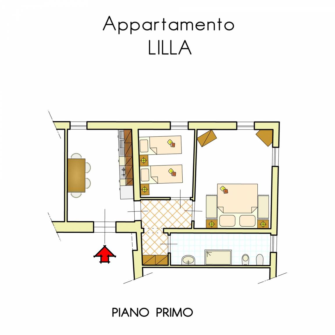Appartamento Lilla (55 m²) ist eine zwei-Zimmer Wohneinheit, die auf eins Etage gebaut ist, mit eins Badezimmer. Hier können bis zu vier Leute schlafen.