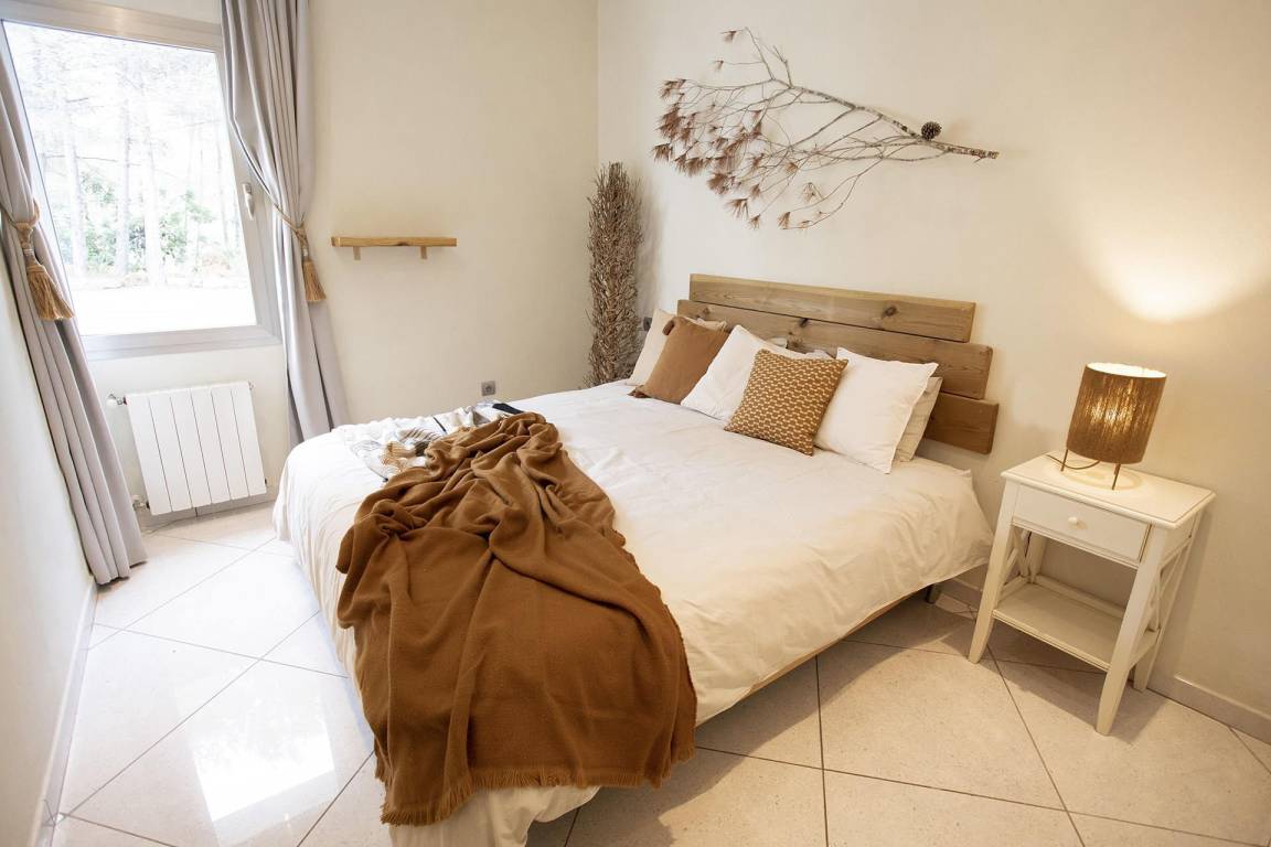 Die Villa umfasst insgesamt 6 Schlafzimmer und 3 Bäder und bietet Platz für bis zu 12 Gäste auf mehreren Geschossen. Jedes Schlafzimmer ist mit Bedacht eingerichtet und gewährleistet Komfort sowie Privatsphäre. Die 3 Bäder sind ausreichend dimensioniert, um die volle Kapazität der Unterkunft zu bedienen. Der offene Grundriss verbindet die inneren Wohnbereiche nahtlos mit den Außenbereichen und schafft eine harmonische Beziehung zwischen dem Innenraum und der umgebenden Kiefernwaldlandschaft.