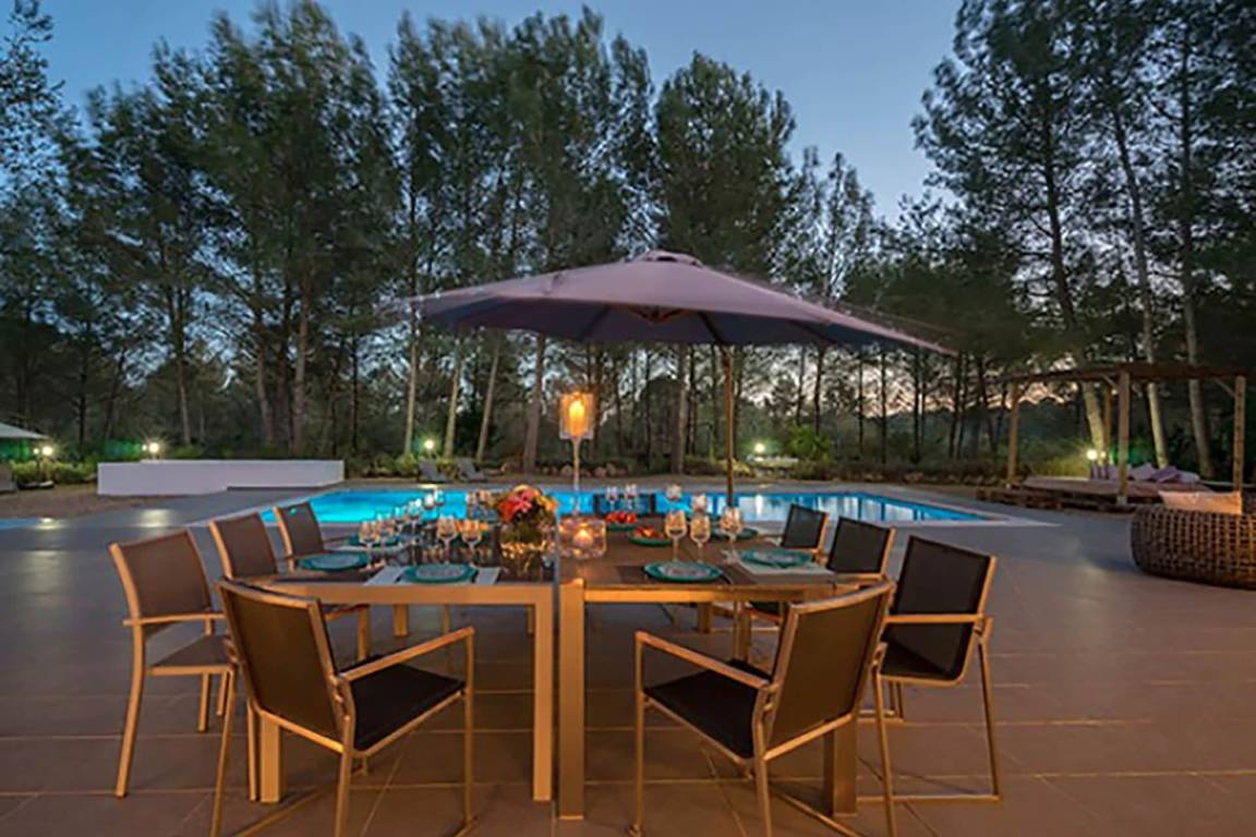 Die Villa liegt inmitten eines Kiefernwaldes und bietet eine seltene Abgeschiedenheit und Naturverbundenheit. Der großzügige Garten ermöglicht Außenaktivitäten und Spaziergänge. Dedizierte Außenbereiche für Entspannung und Mahlzeiten sind vorhanden.