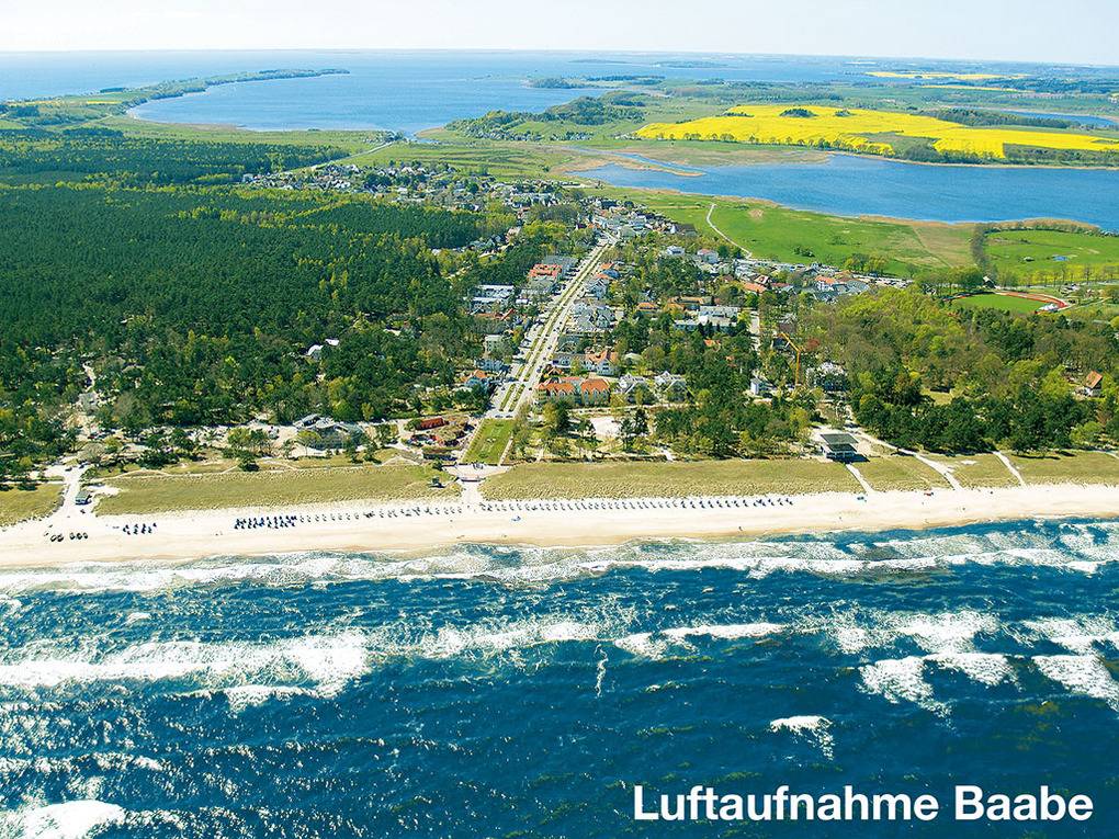 Ort: Ostseebad Baabe. Erstklassige Lage in unmittelbarer Strandnähe (200 m). Sehr ruhige Lage in einer Wohnsiedlung, dennoch zentral zur Ortsmitte (300 m).