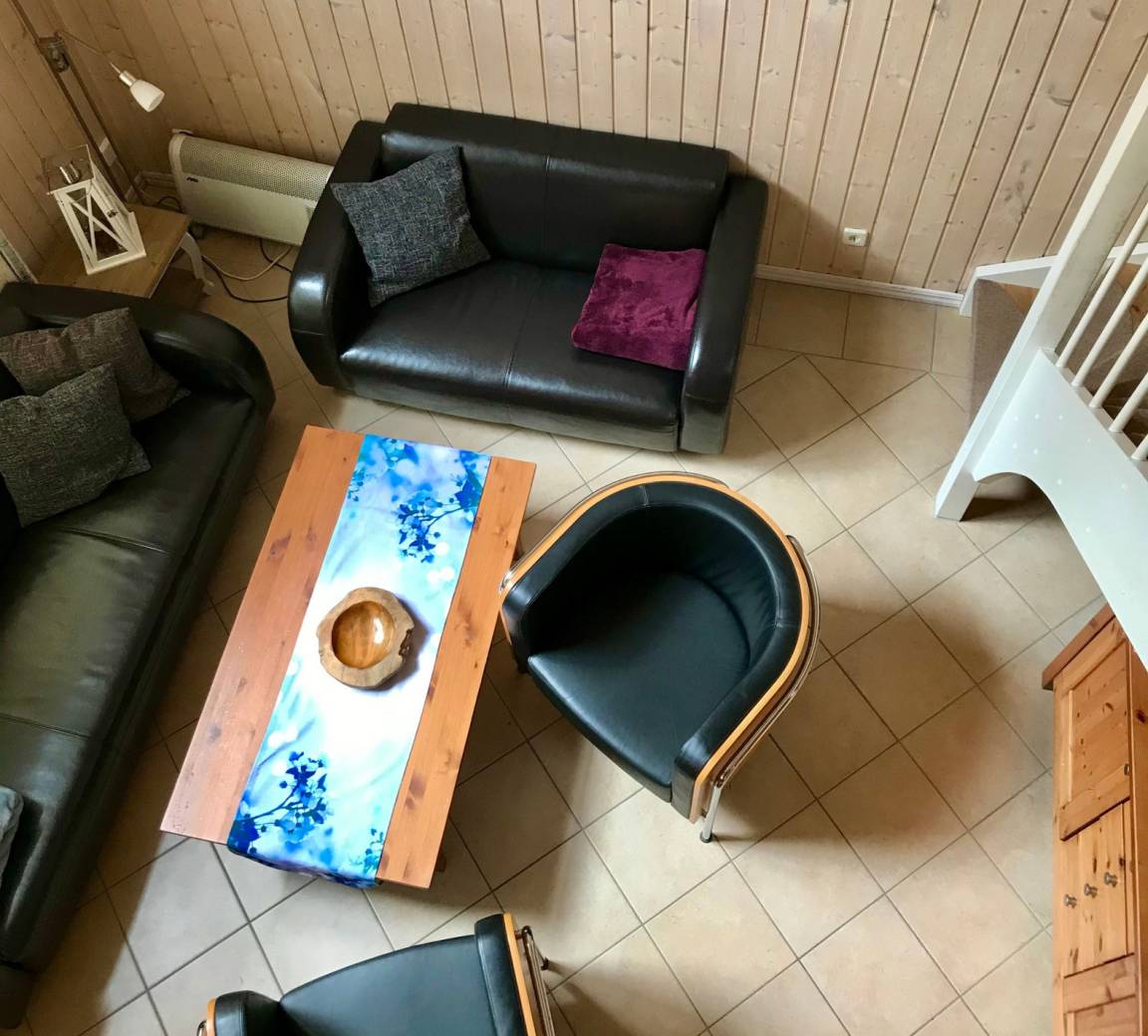 Im Winter und an kühleren Tagen lässt sich am knisternden Modernen Kamin ein lauschiger Abend verbringen. Die elektrische Fußbodenheizung im Untergeschoss sorgt ebenfalls für angenehme Wärme. In der gemütlichen Sitzecke der Galerie lässt es sich in Ruhe lesen, wenn das Wetter einmal nicht so mitspielt.