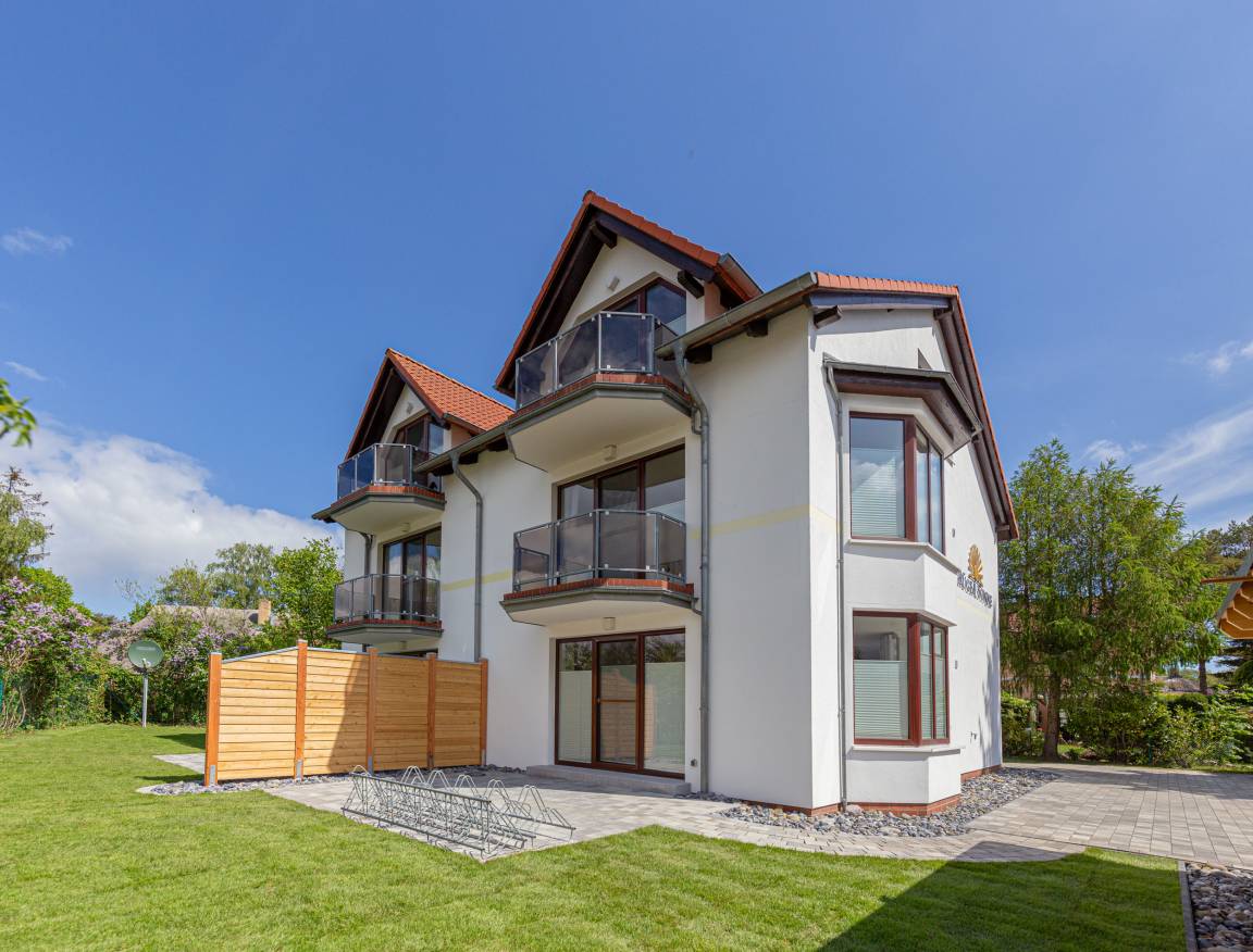 Die Ferienwohnung 7 im 2. Obergeschoss im Haus Rügensonne verfügt über einen freundlichen Eingangsbereich, einen Balkon, einen gemütlichen Wohnbereich und ein separates Schlafzimmer.